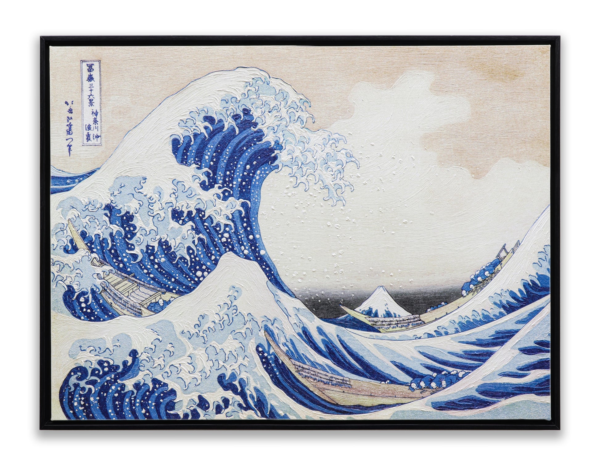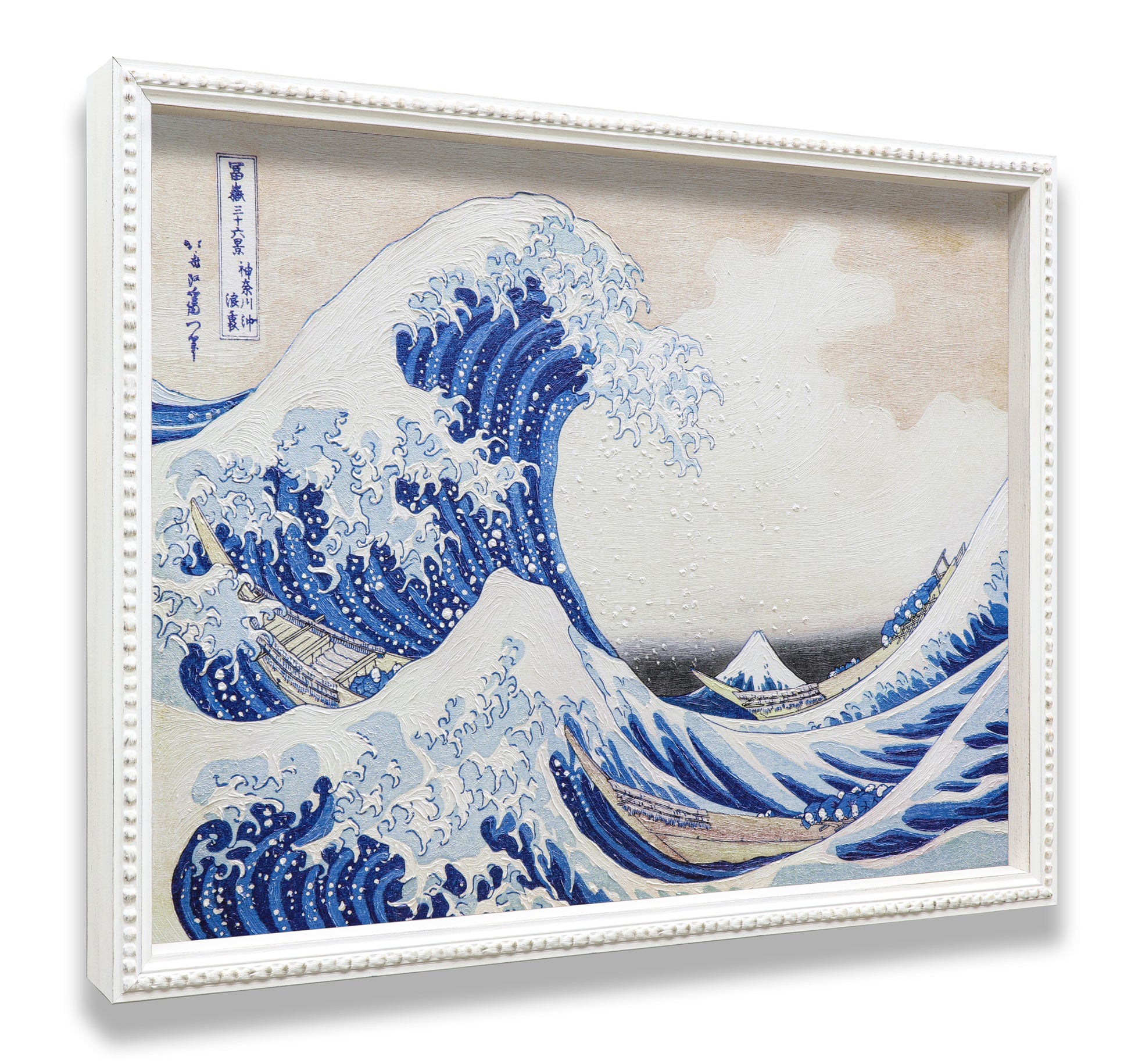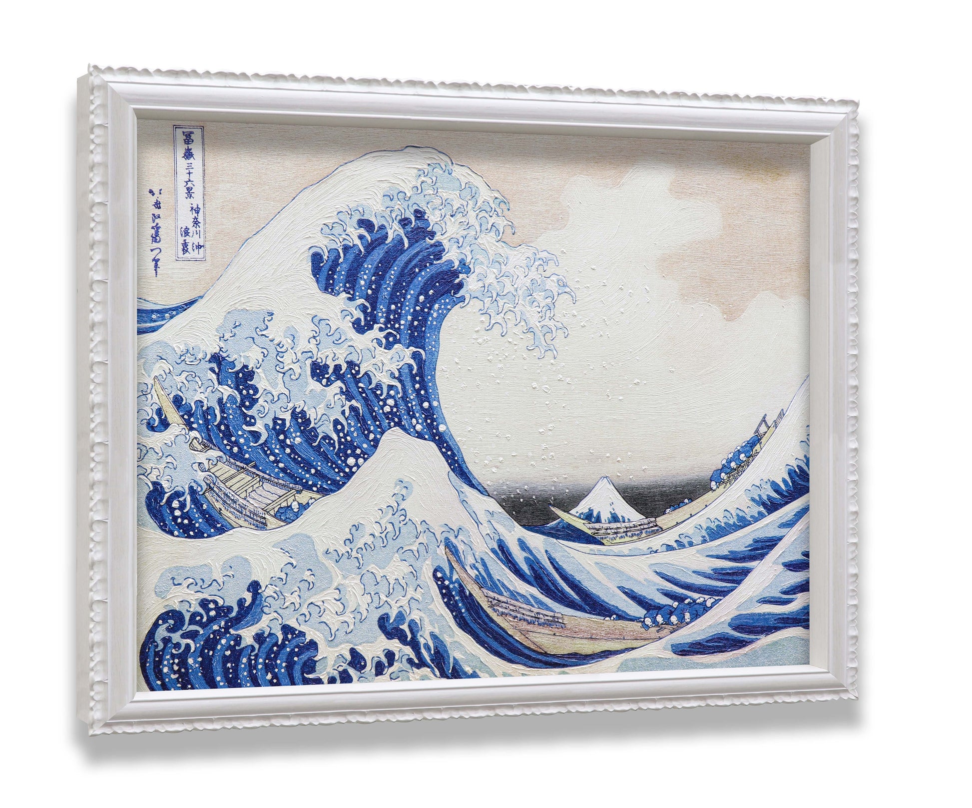 3D Print simulation hand painted texture on canvas painting Hokusai Famous Classic Wall Art The Great Wave Japanese 3D Brushstroke Wood frame UNIQUE INNOVATION Patent pending