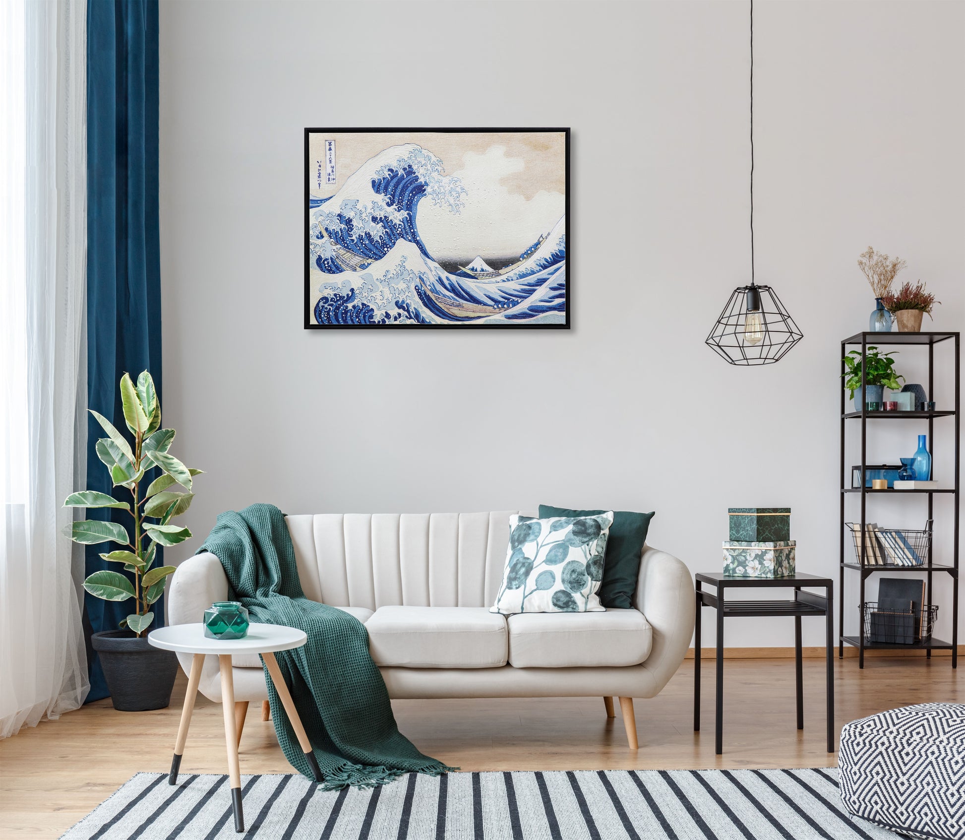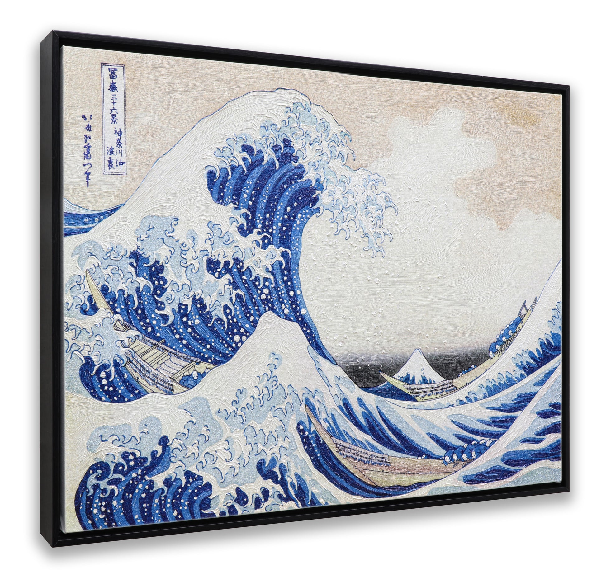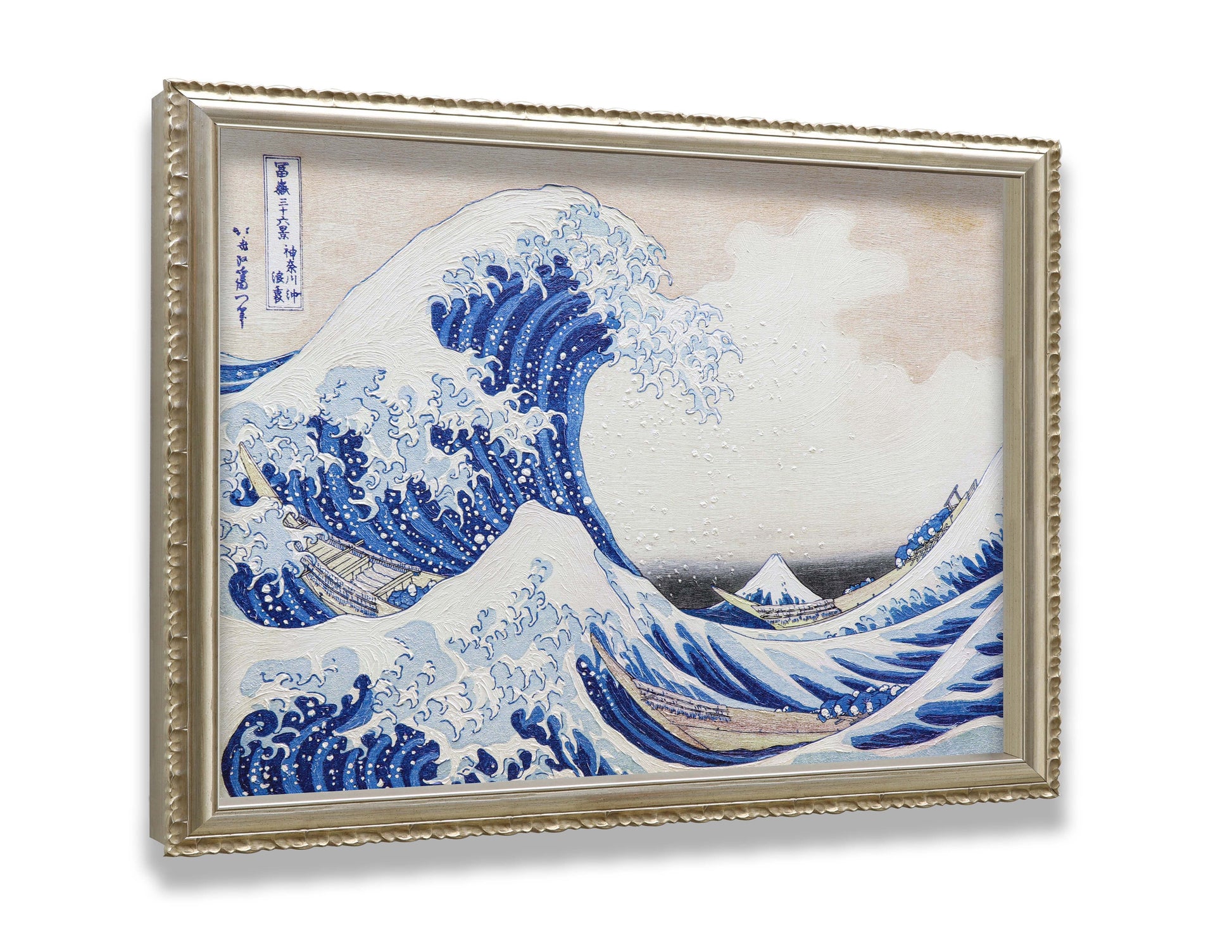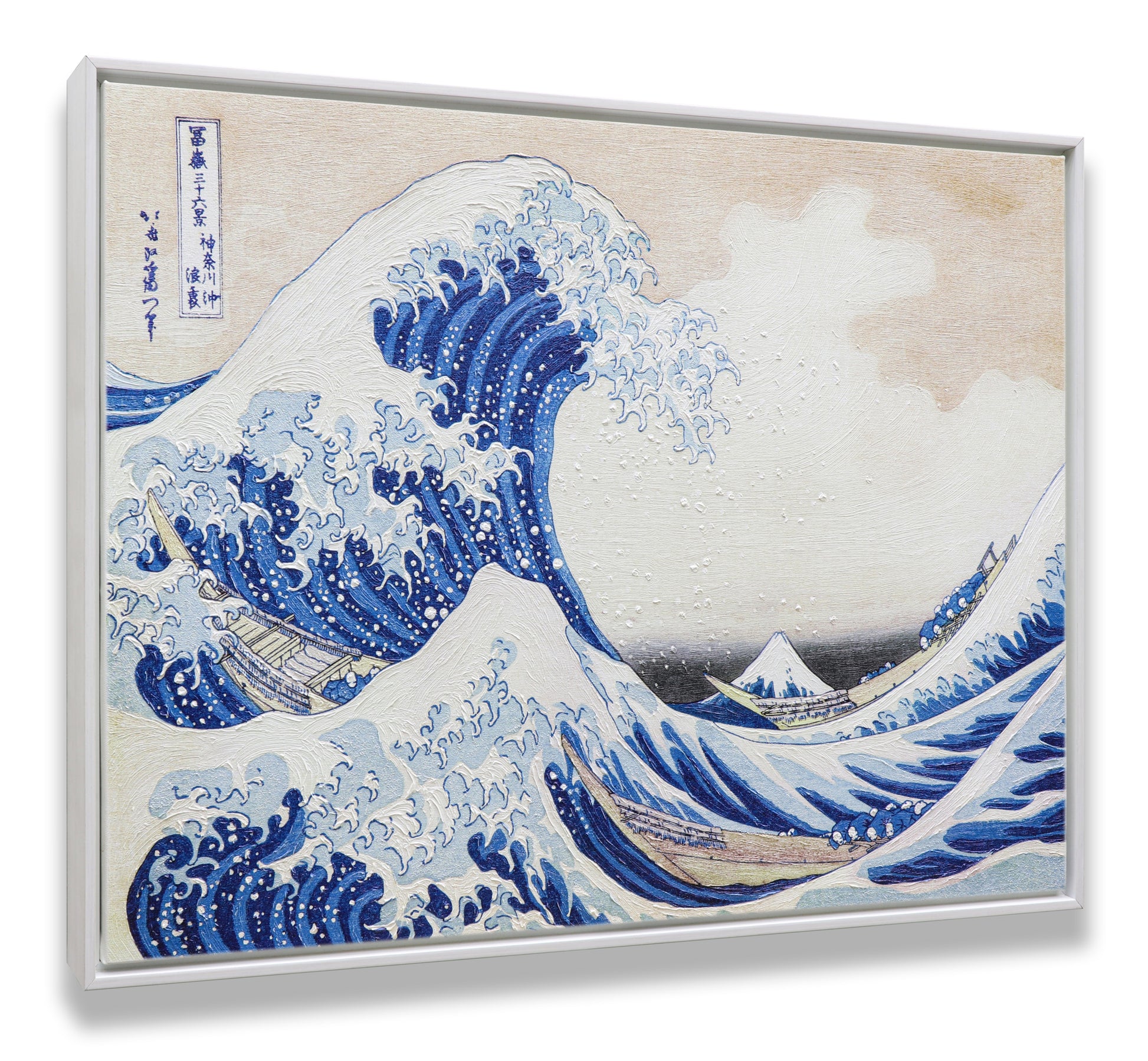 3D Print simulation hand painted texture on canvas painting Hokusai Famous Classic Wall Art The Great Wave Japanese 3D Brushstroke Wood frame UNIQUE INNOVATION Patent pending