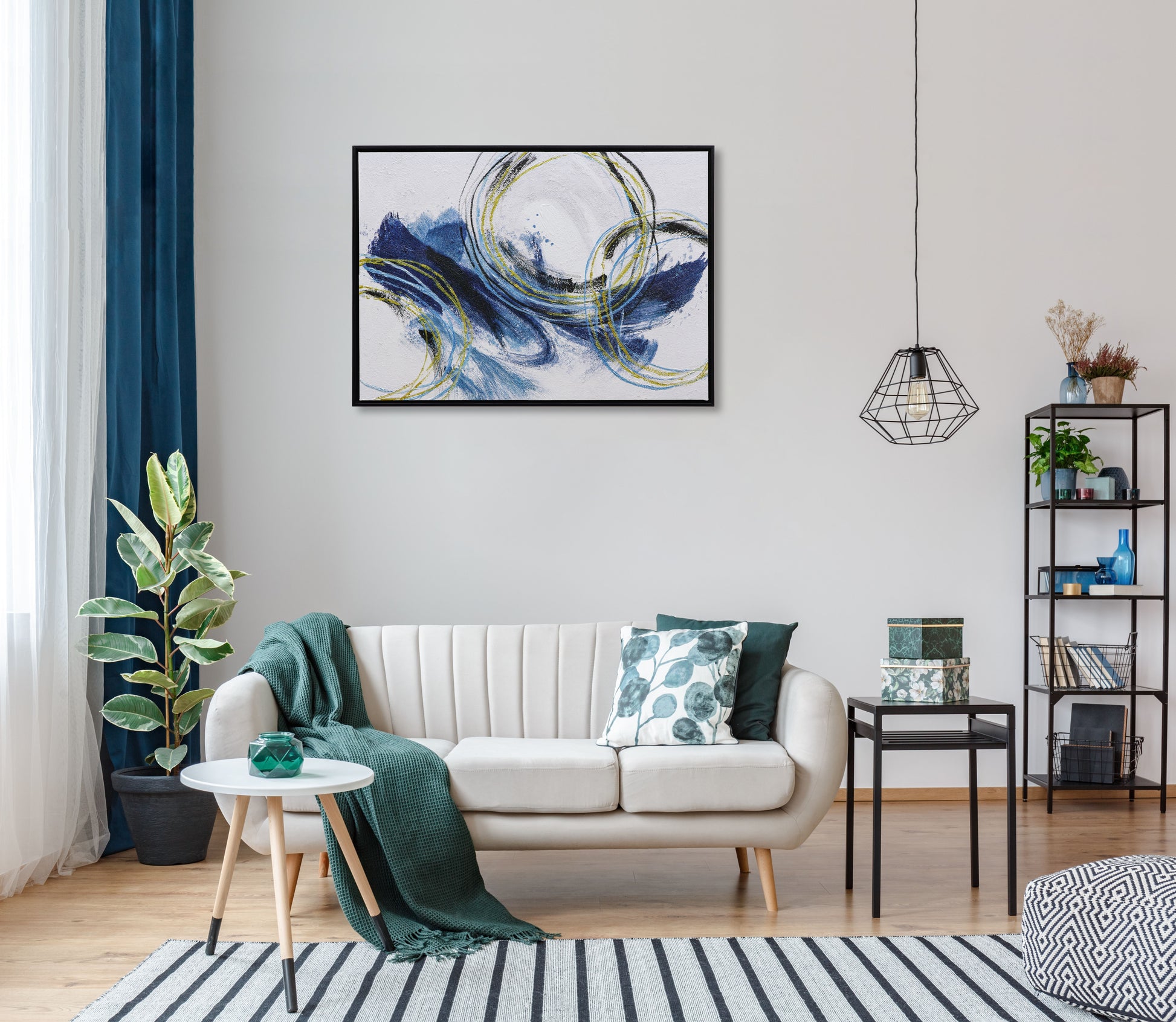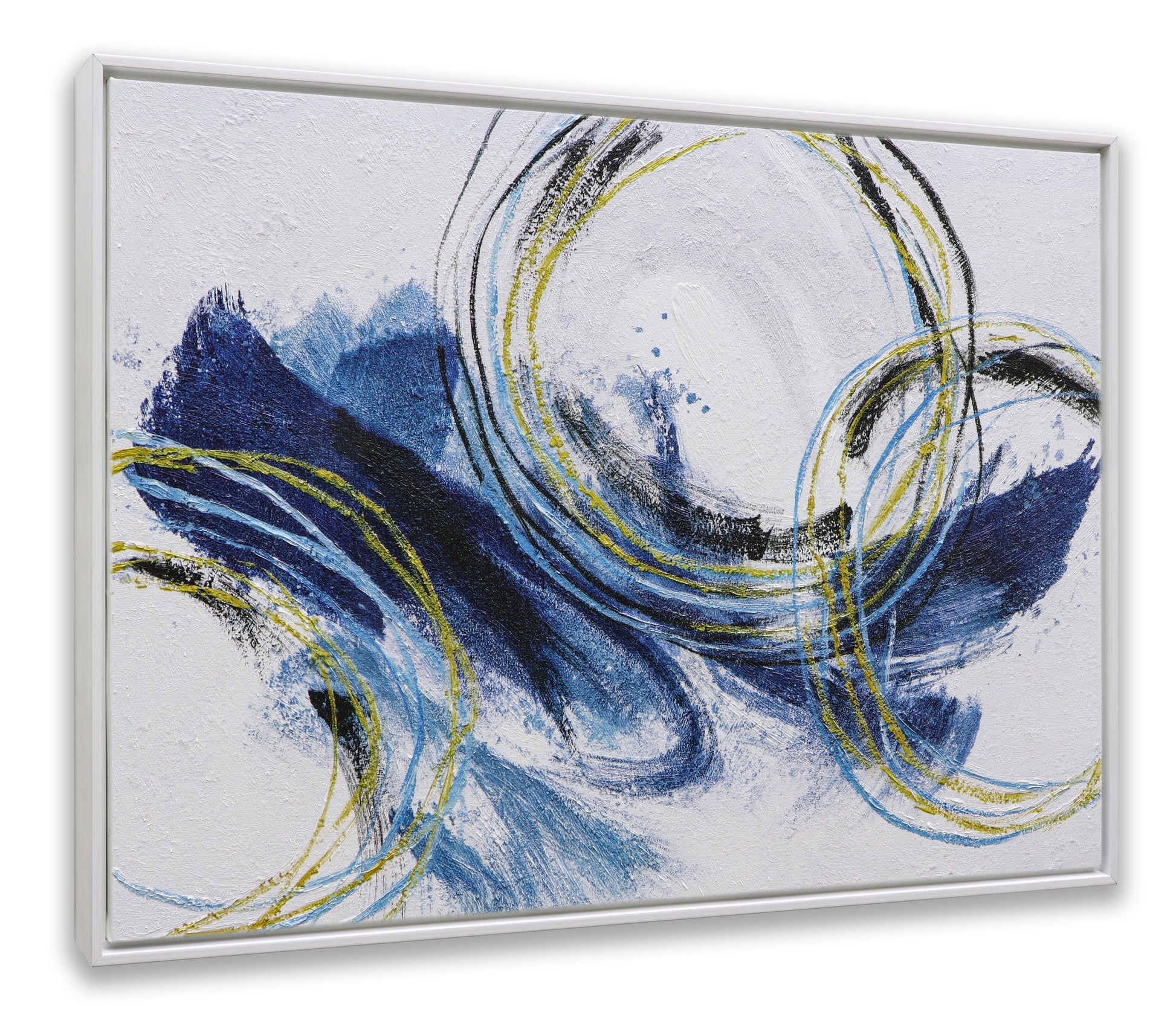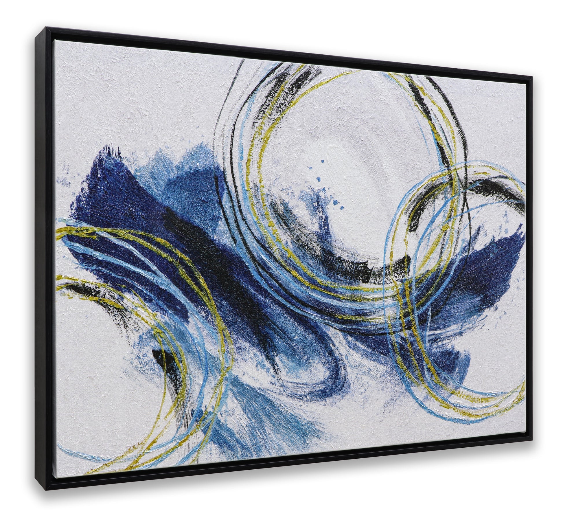 3D Print simulation hand painted texture on canvas painting Wall Art Modern Abstract Blue Black Gold Circle 3D Brushstroke Texture Wood frame UNIQUE INNOVATION Patent pending