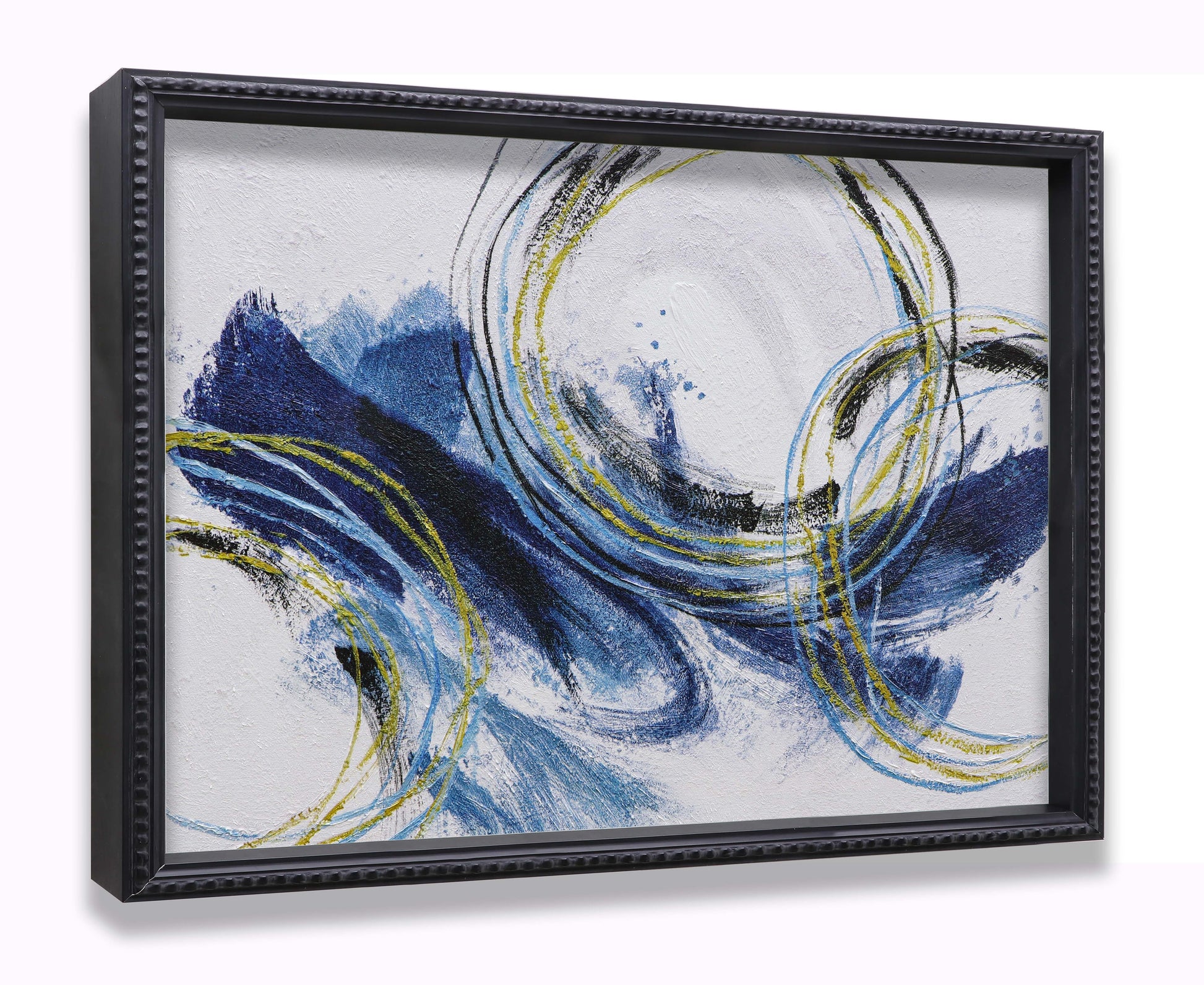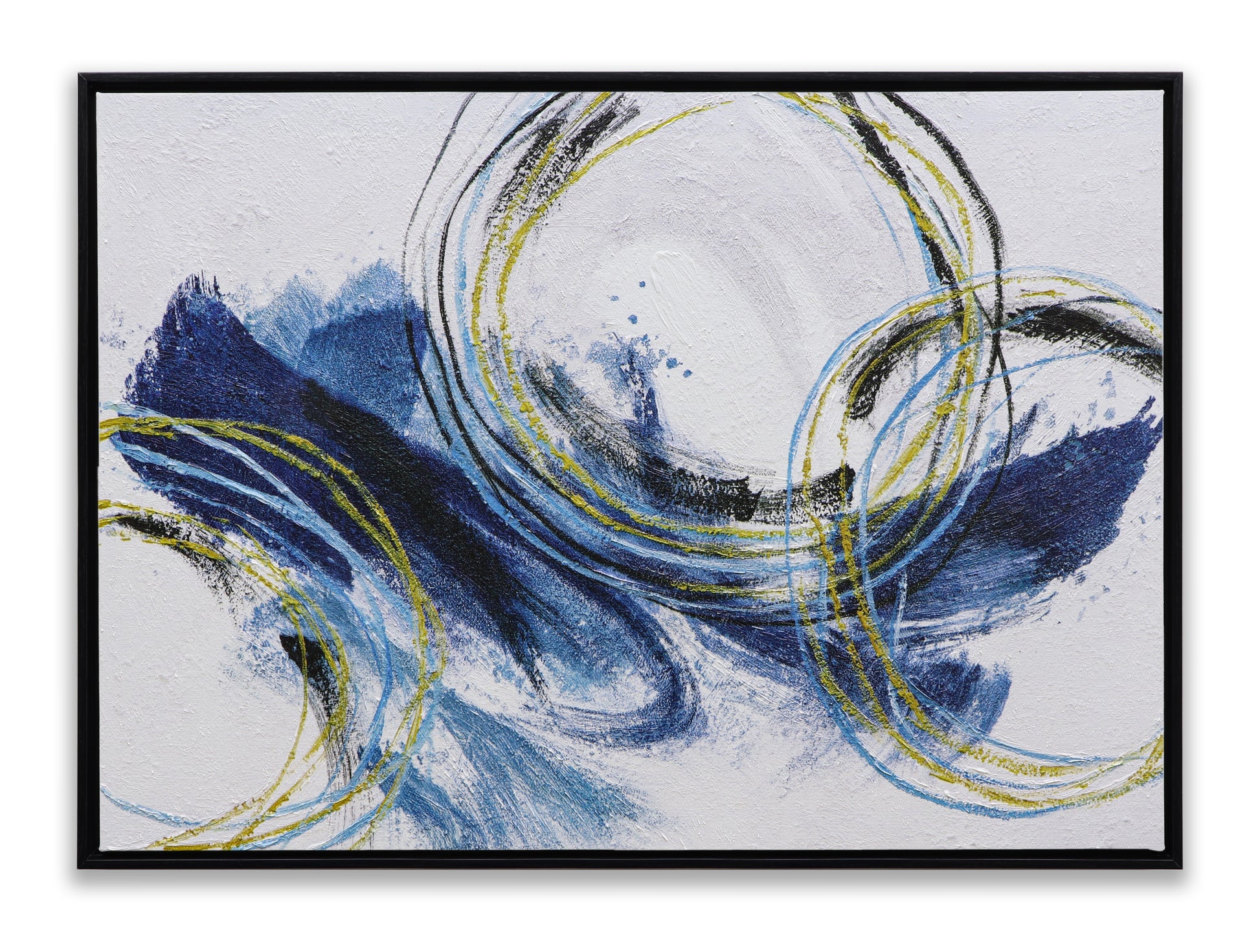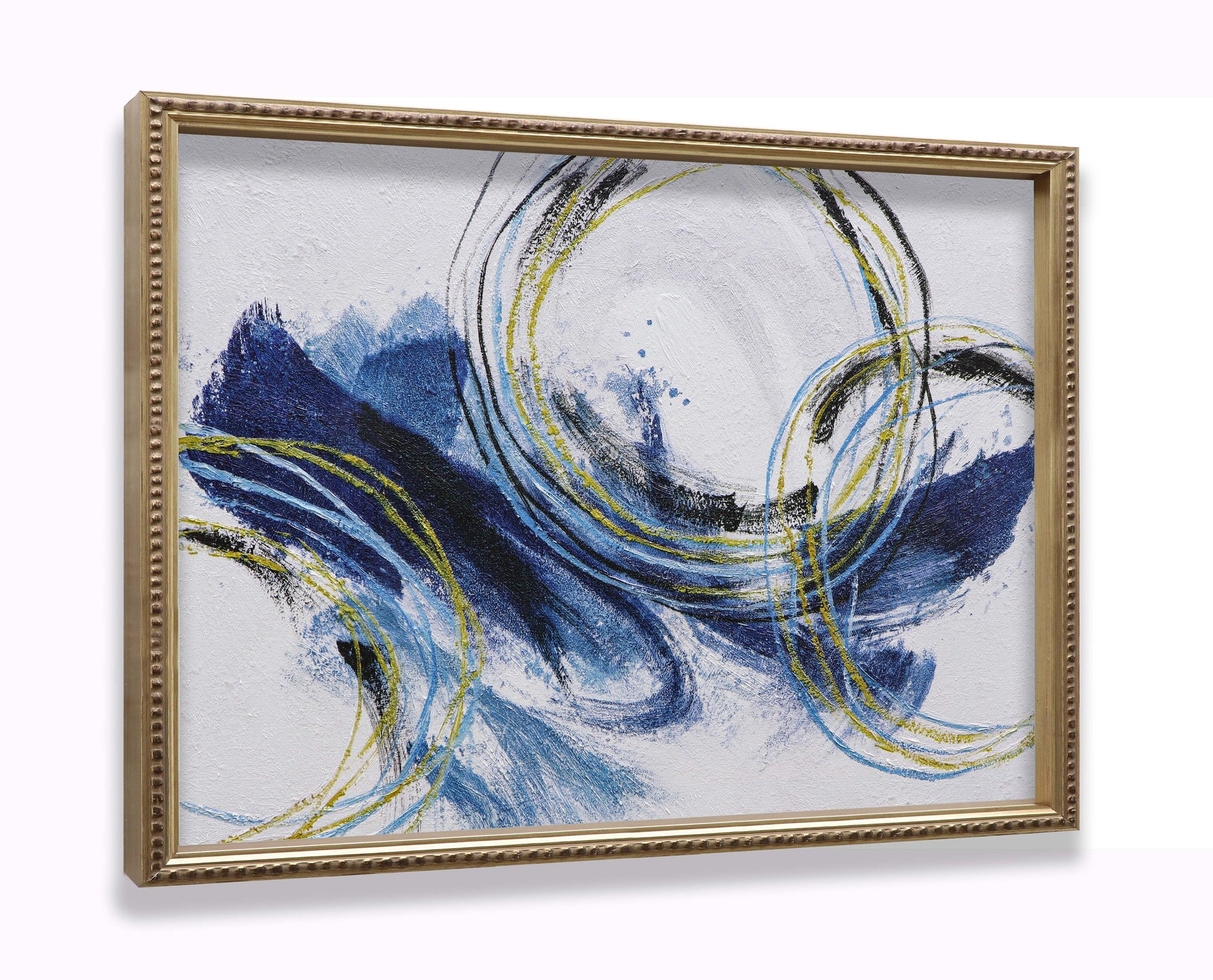 3D Print simulation hand painted texture on canvas painting Wall Art Modern Abstract Blue Black Gold Circle 3D Brushstroke Texture Wood frame UNIQUE INNOVATION Patent pending