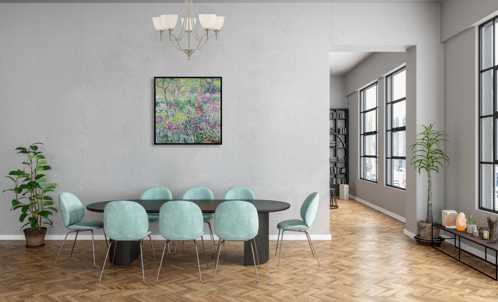3D Print at micro-level precision simulation hand painted texture on canvas painting Claude Monet Famous Classic Wall Art Irises Pink Purple The Artist's Garden in Giverny with Linen Mat Board and Gold Trim 3D Brushstroke Texture Wood frame UNIQUE INNOVATION Patent pending