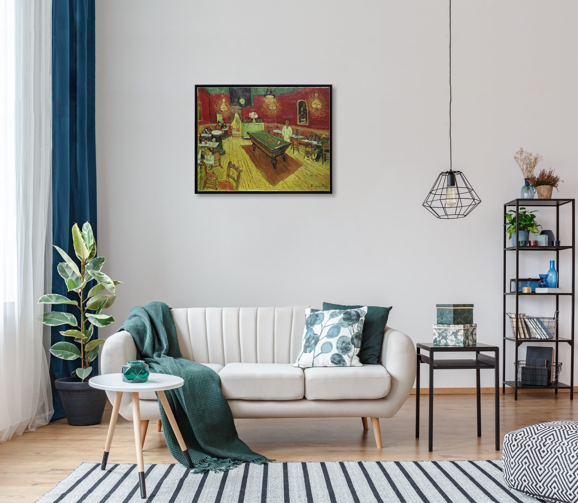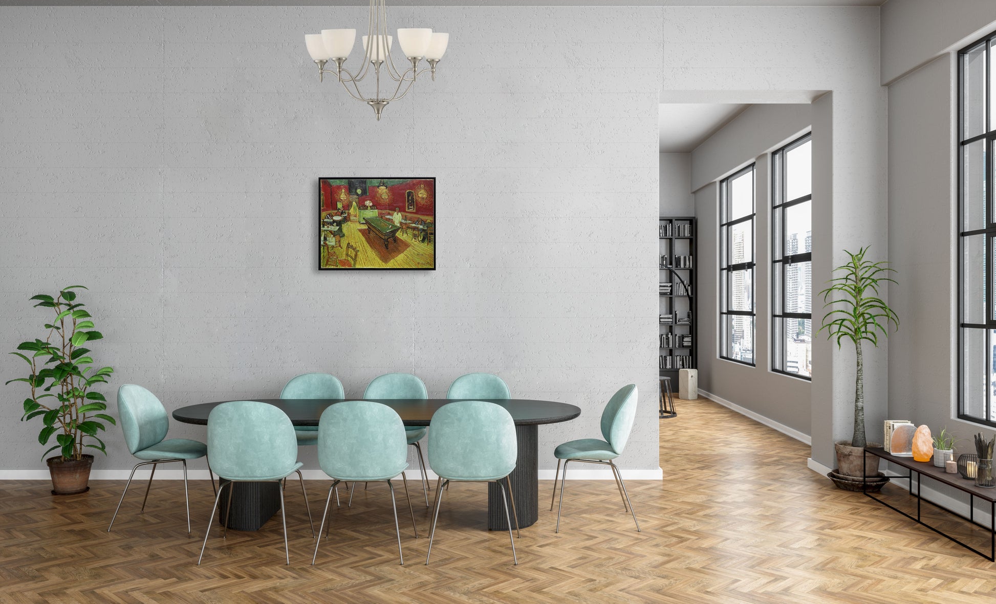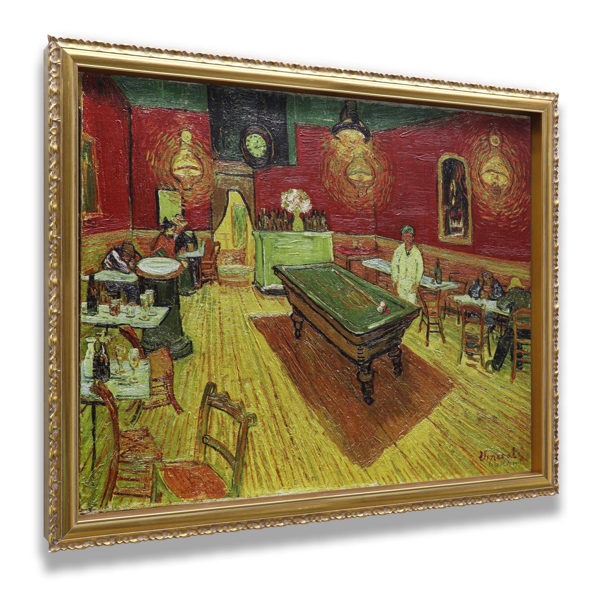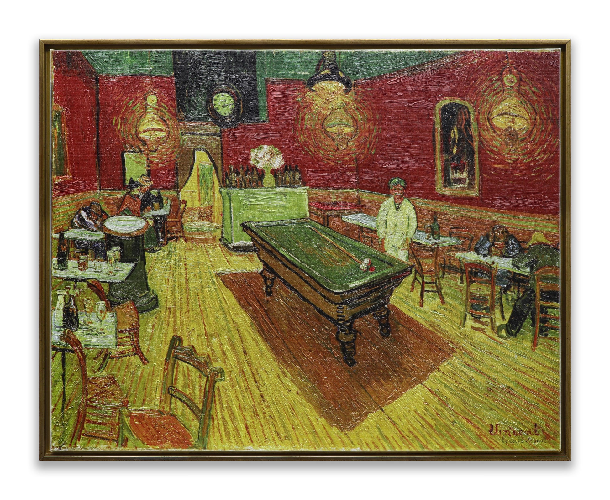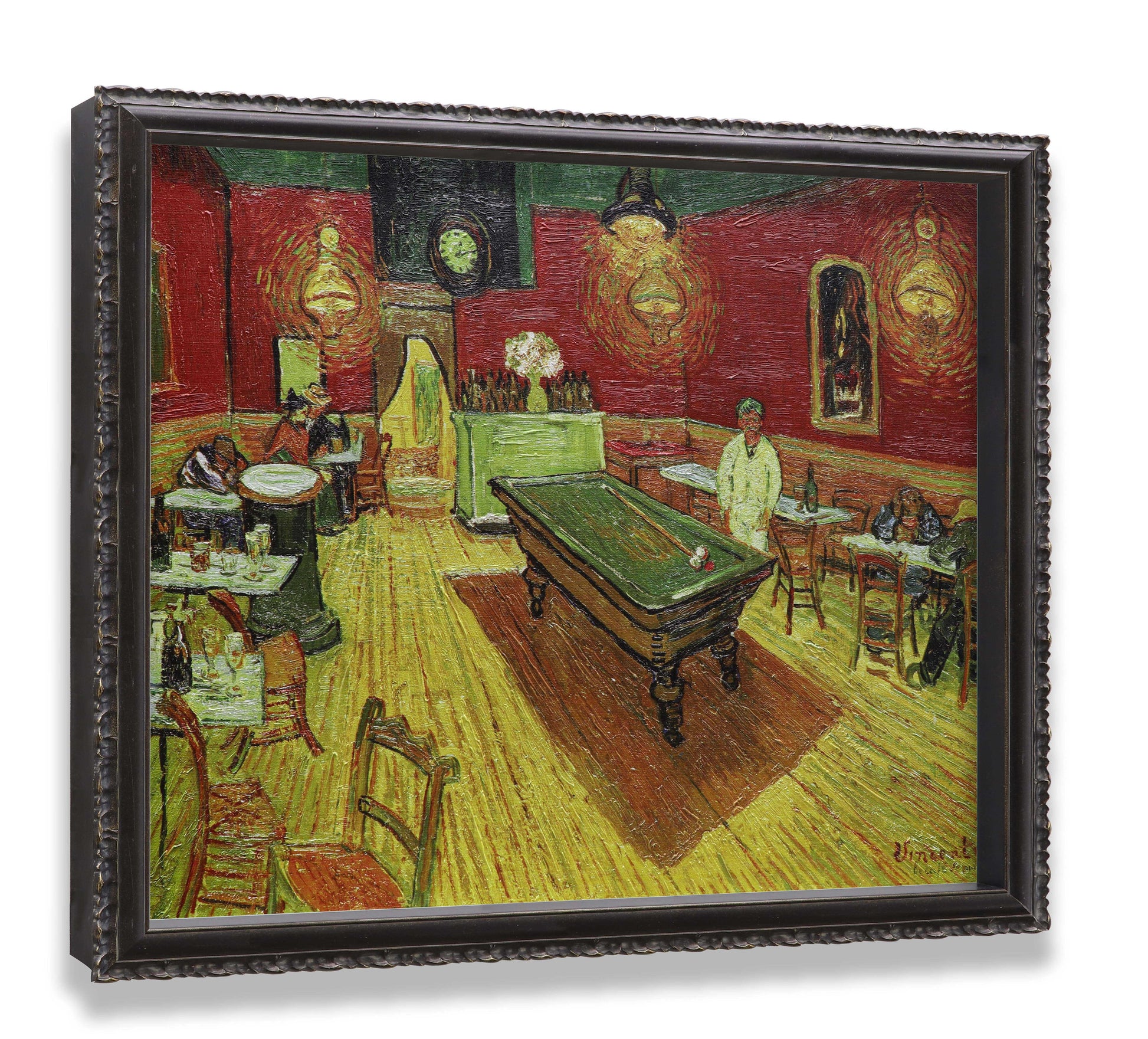 3D Print simulation hand painted texture on canvas painting Framed Van Gogh Famous Classic Wall Art The Night Café in the Place Lamartine Snooker Room 3D Brushstroke Texture Wood frame UNIQUE INNOVATION Patent pending