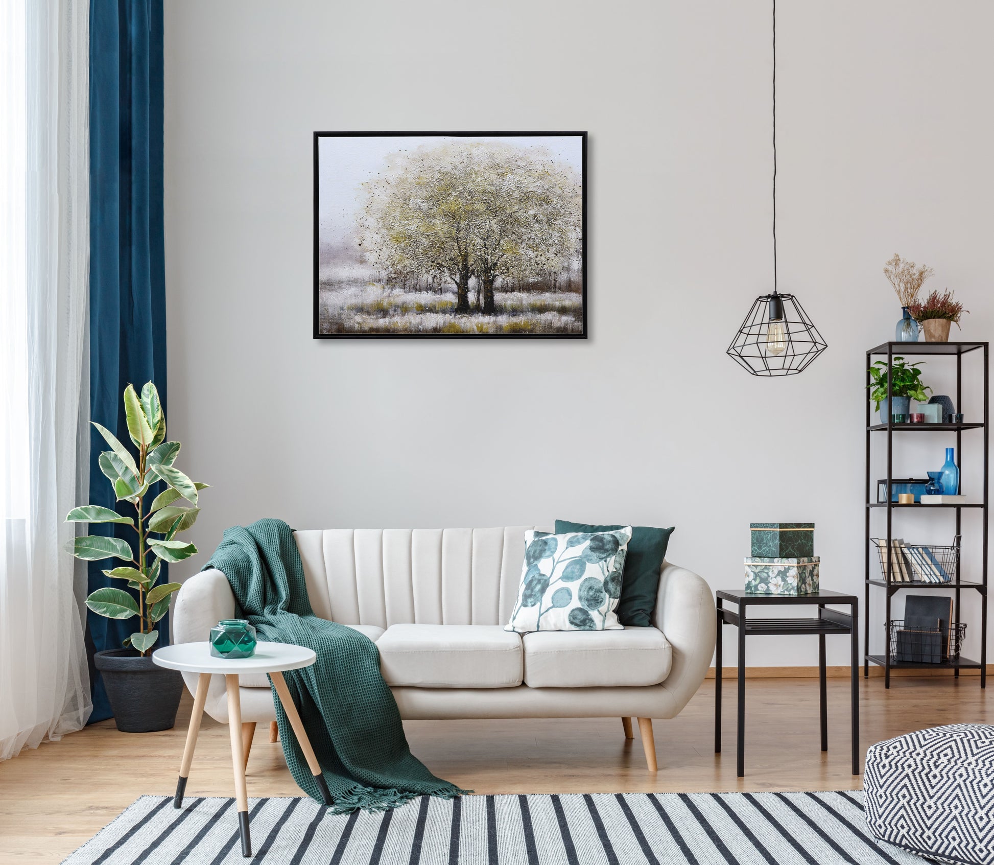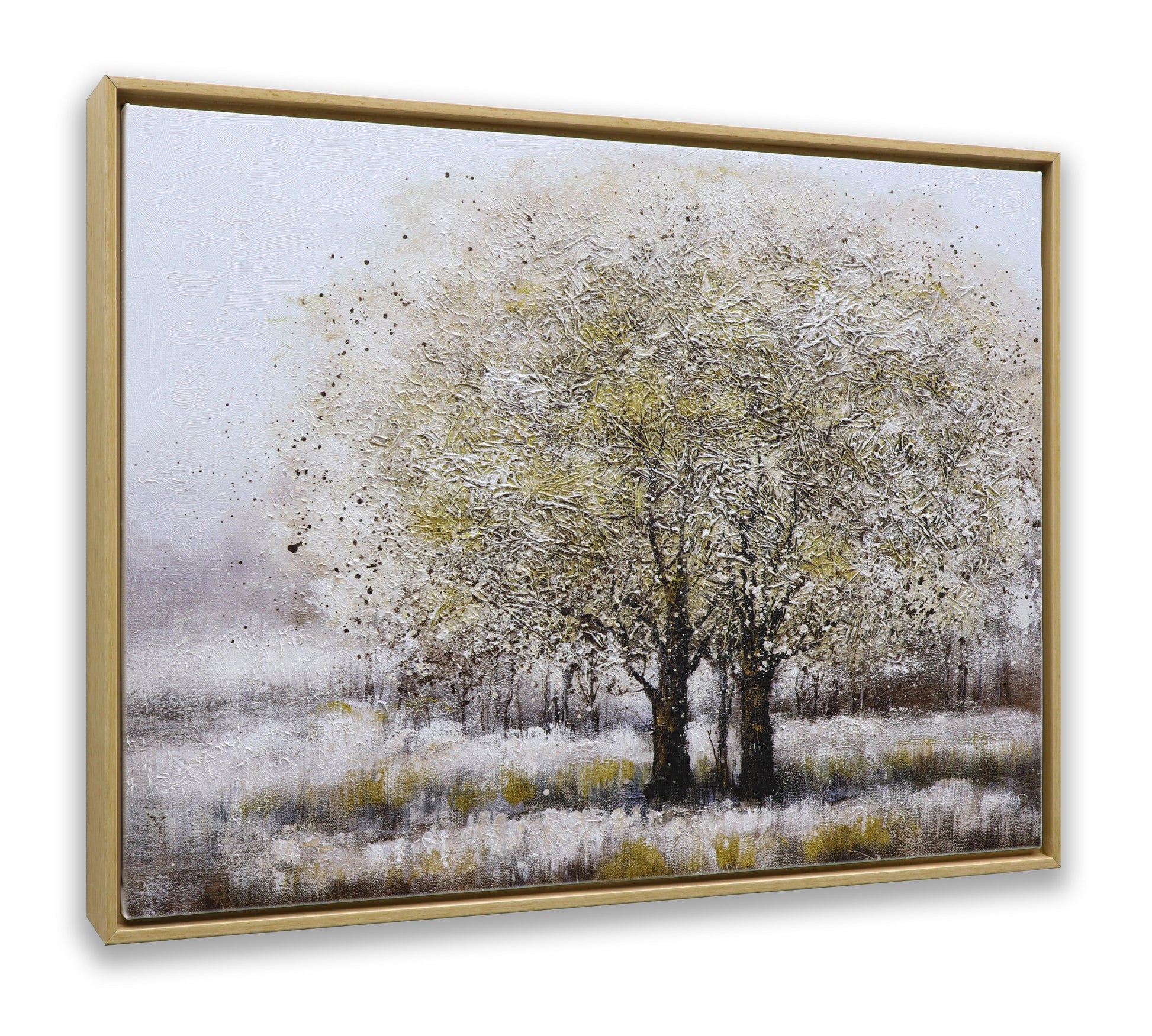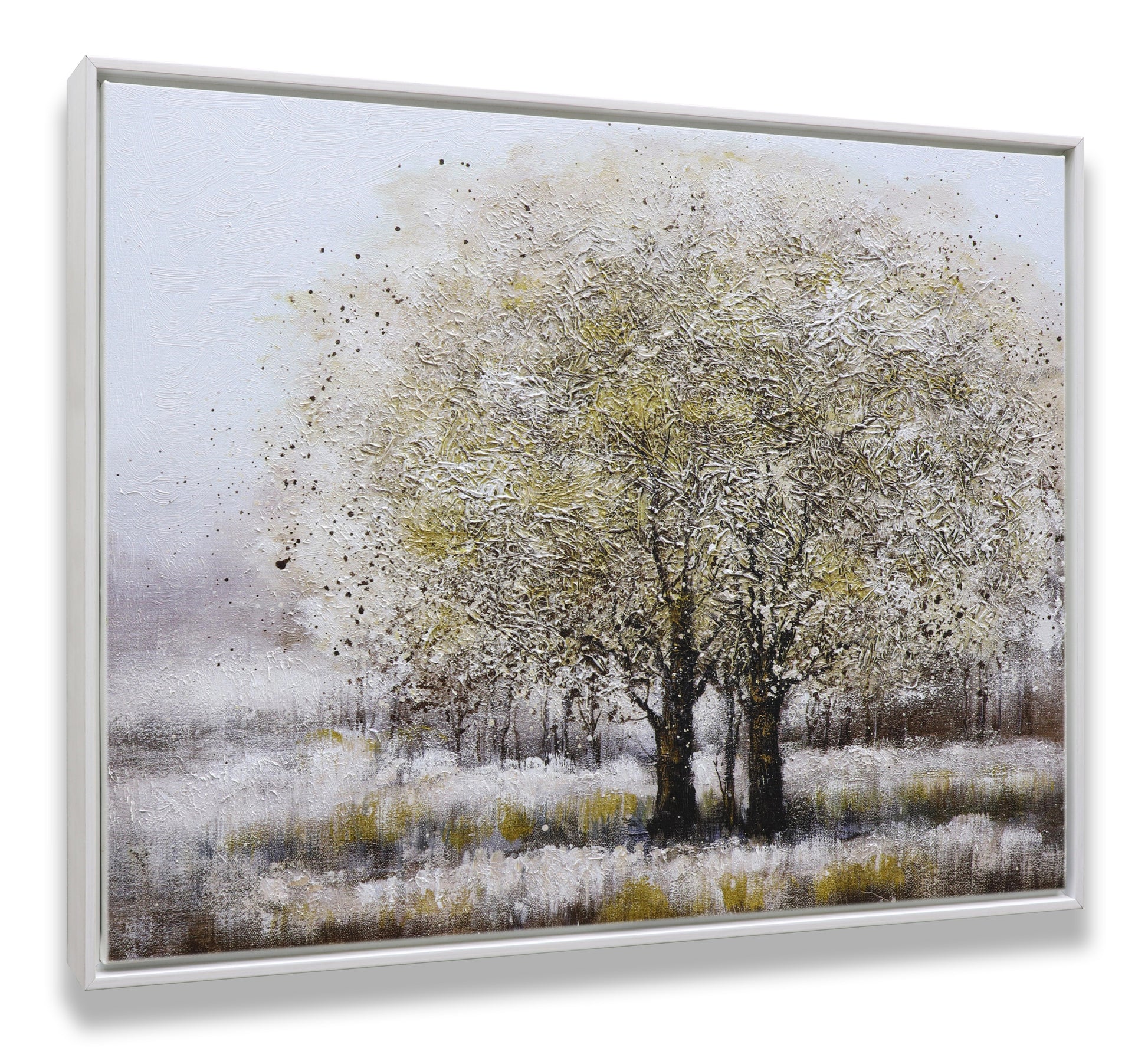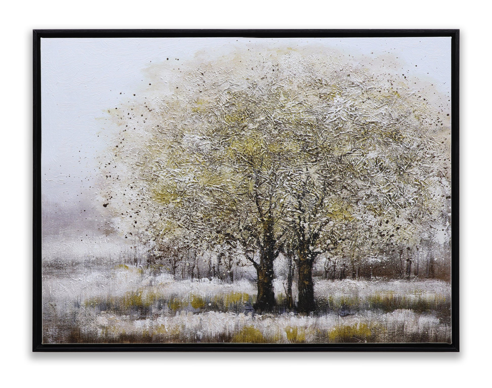 3D Print Simulation Hand Painted Texture on Canvas Painting Wall Art Winter Maple Tree Grey Natural Meadow 3D Brushstroke Texture Wood frame UNIQUE INNOVATION Patent pending