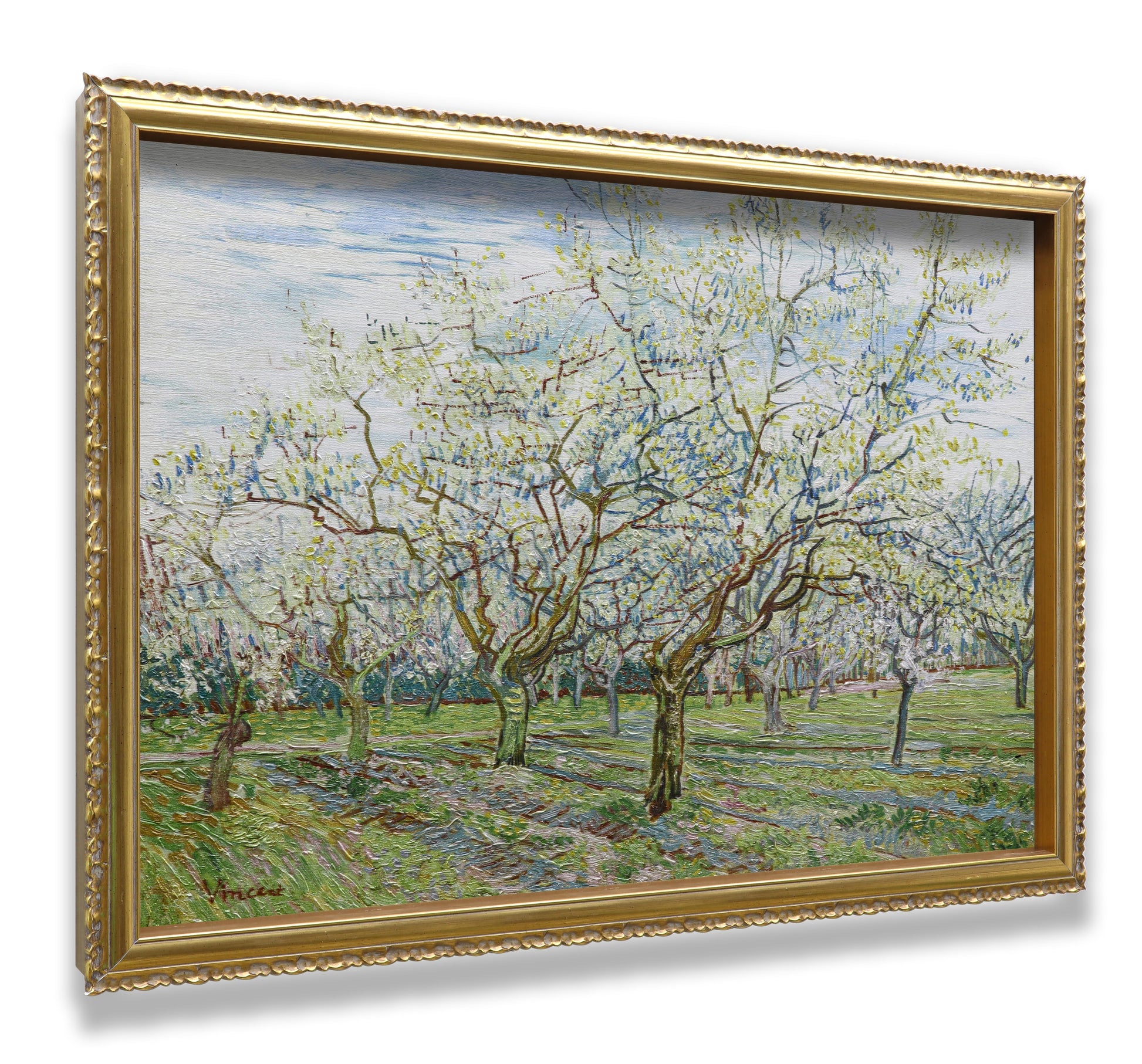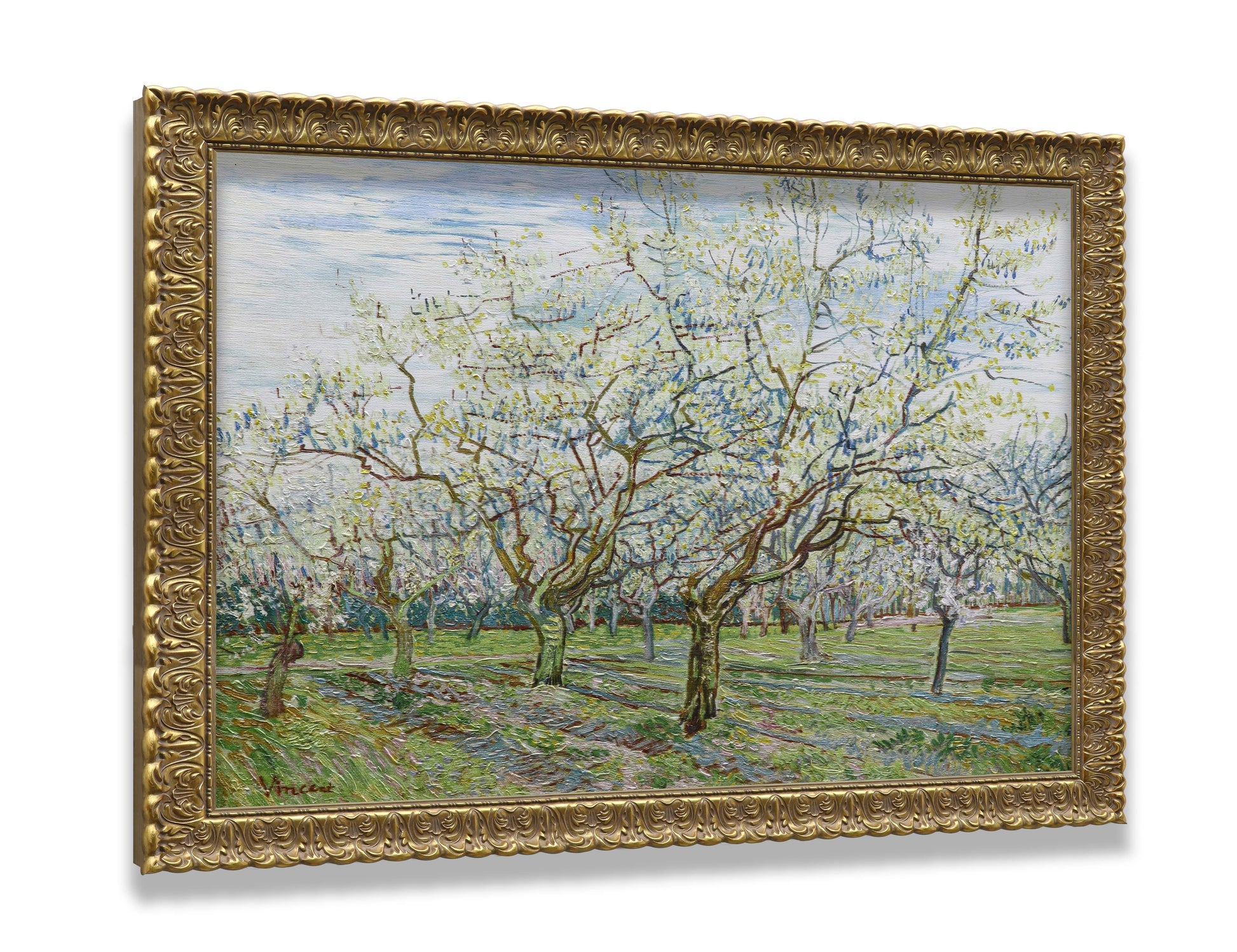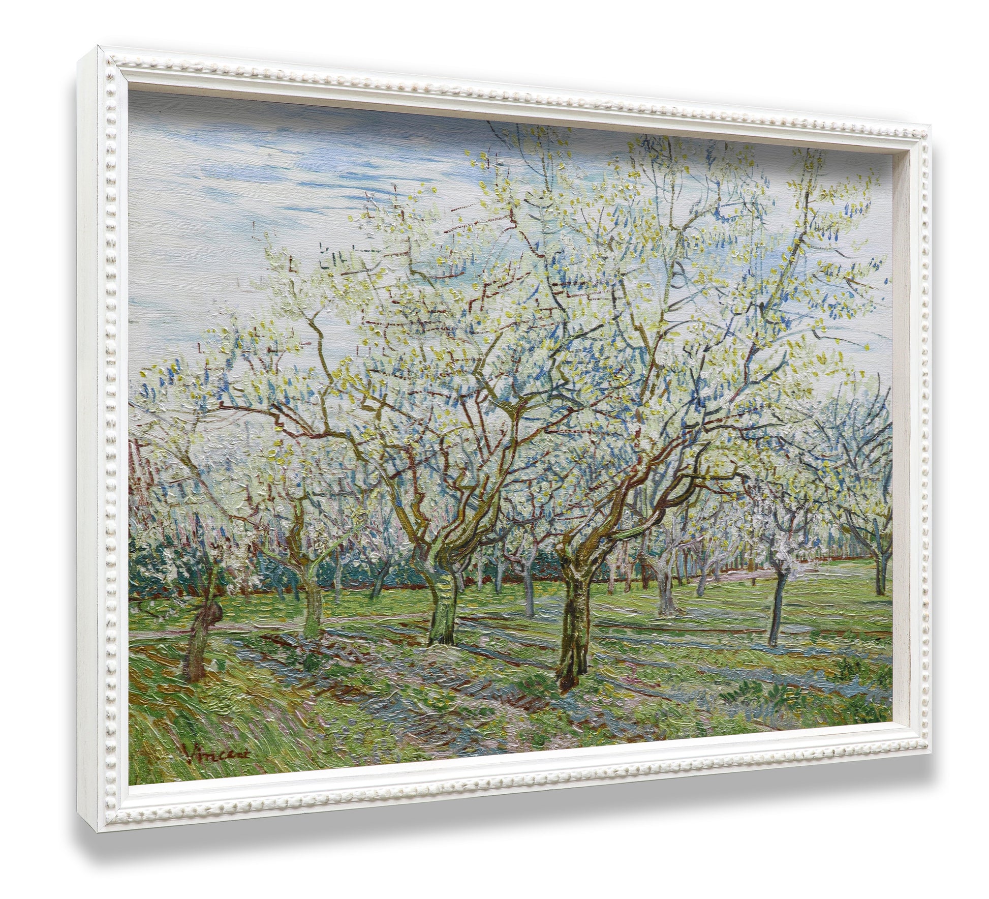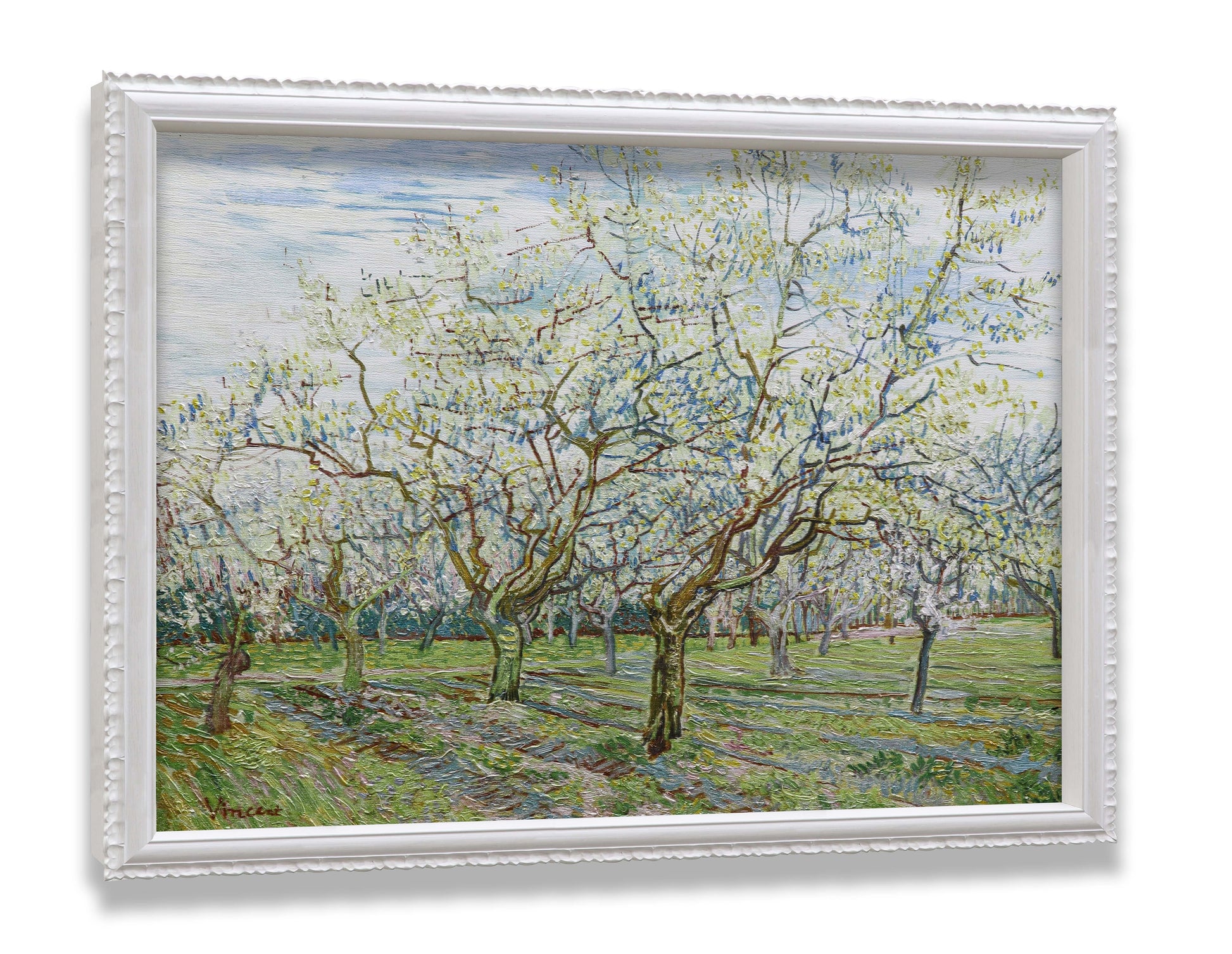 3D Print simulation hand painted texture on canvas painting Framed Van Gogh Famous Classic Wall Art The White Orchard 3D Brushstroke Texture Wood frame UNIQUE INNOVATION Patent pending