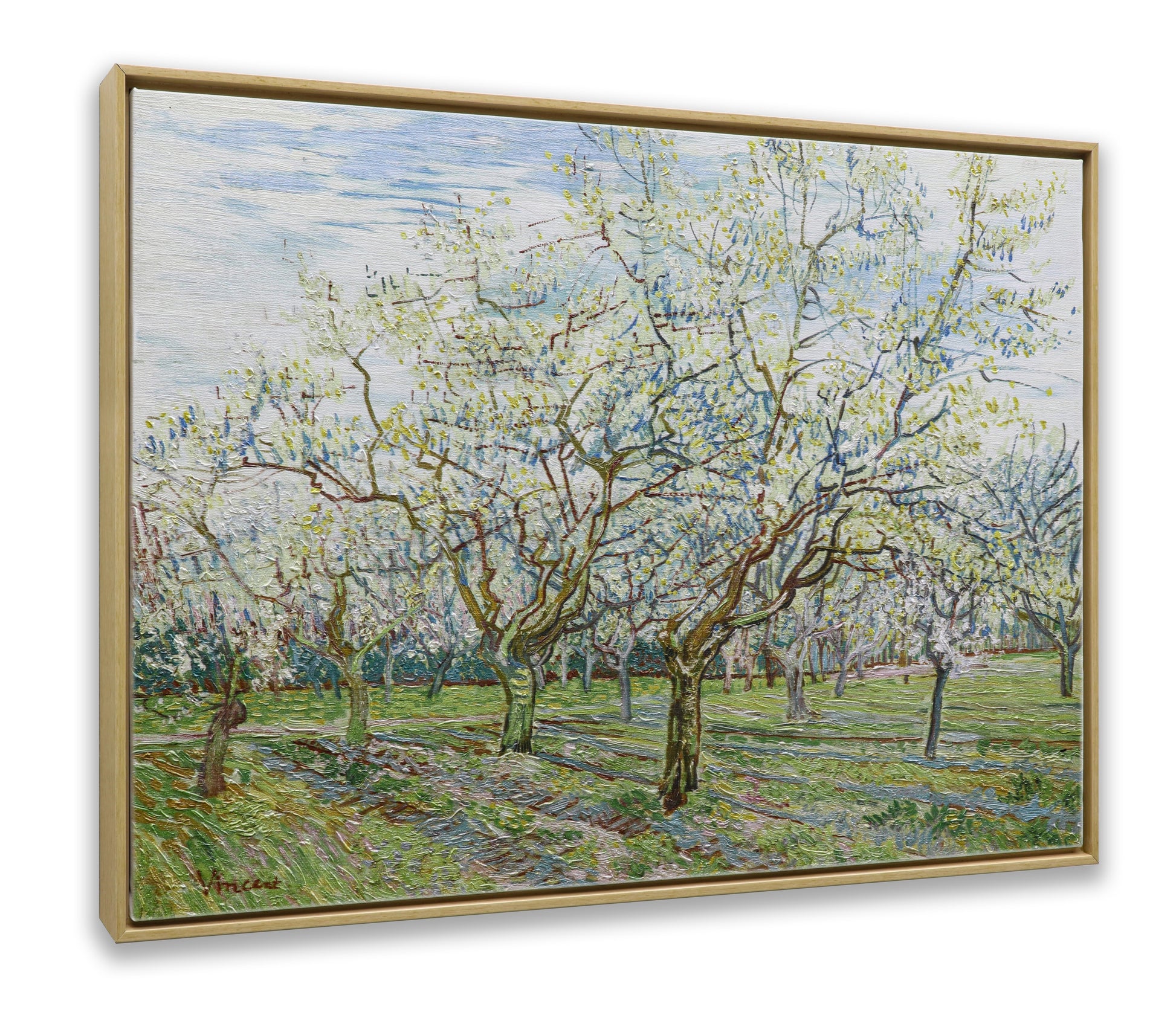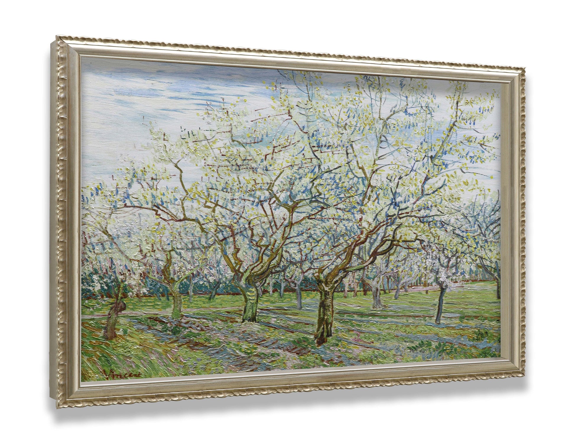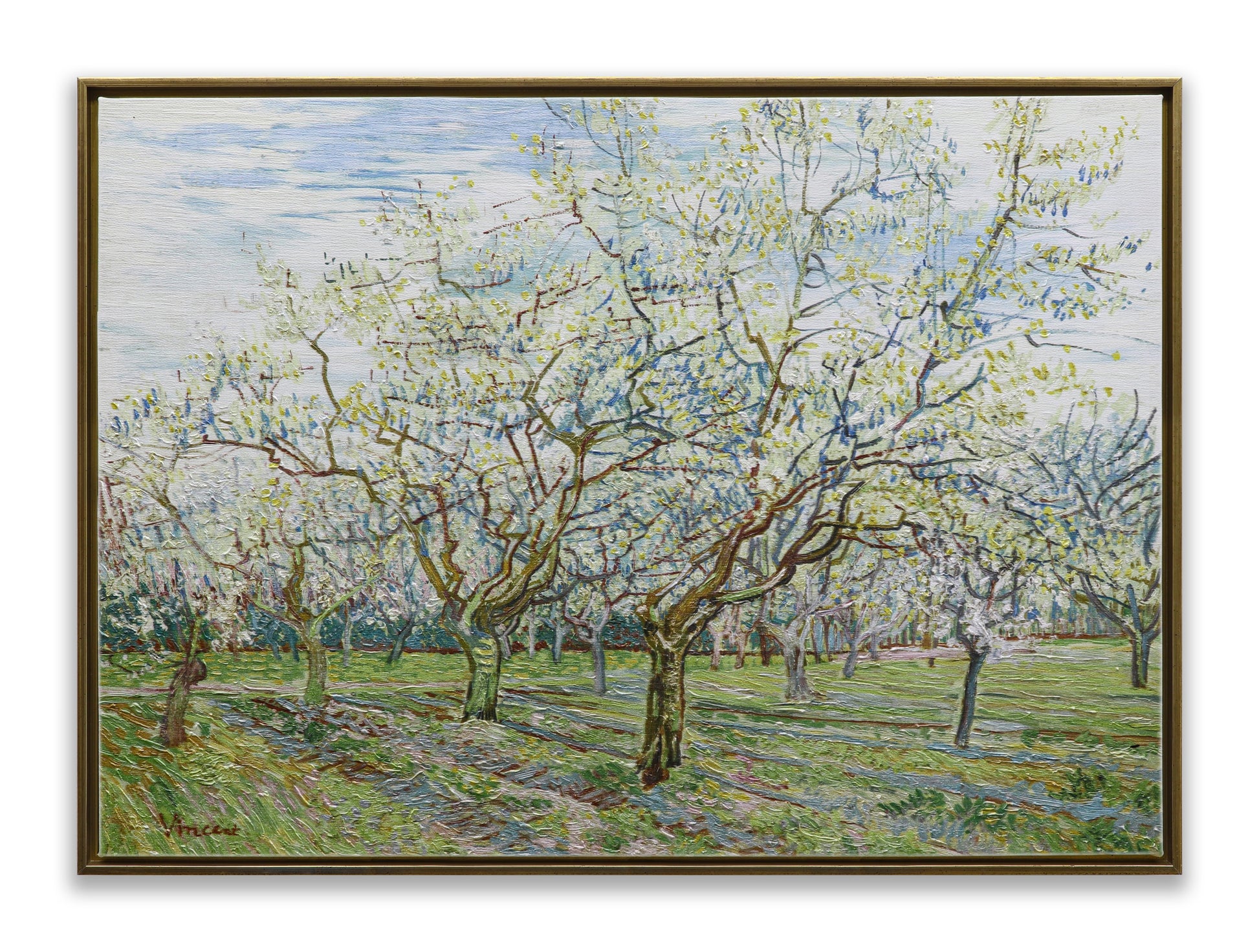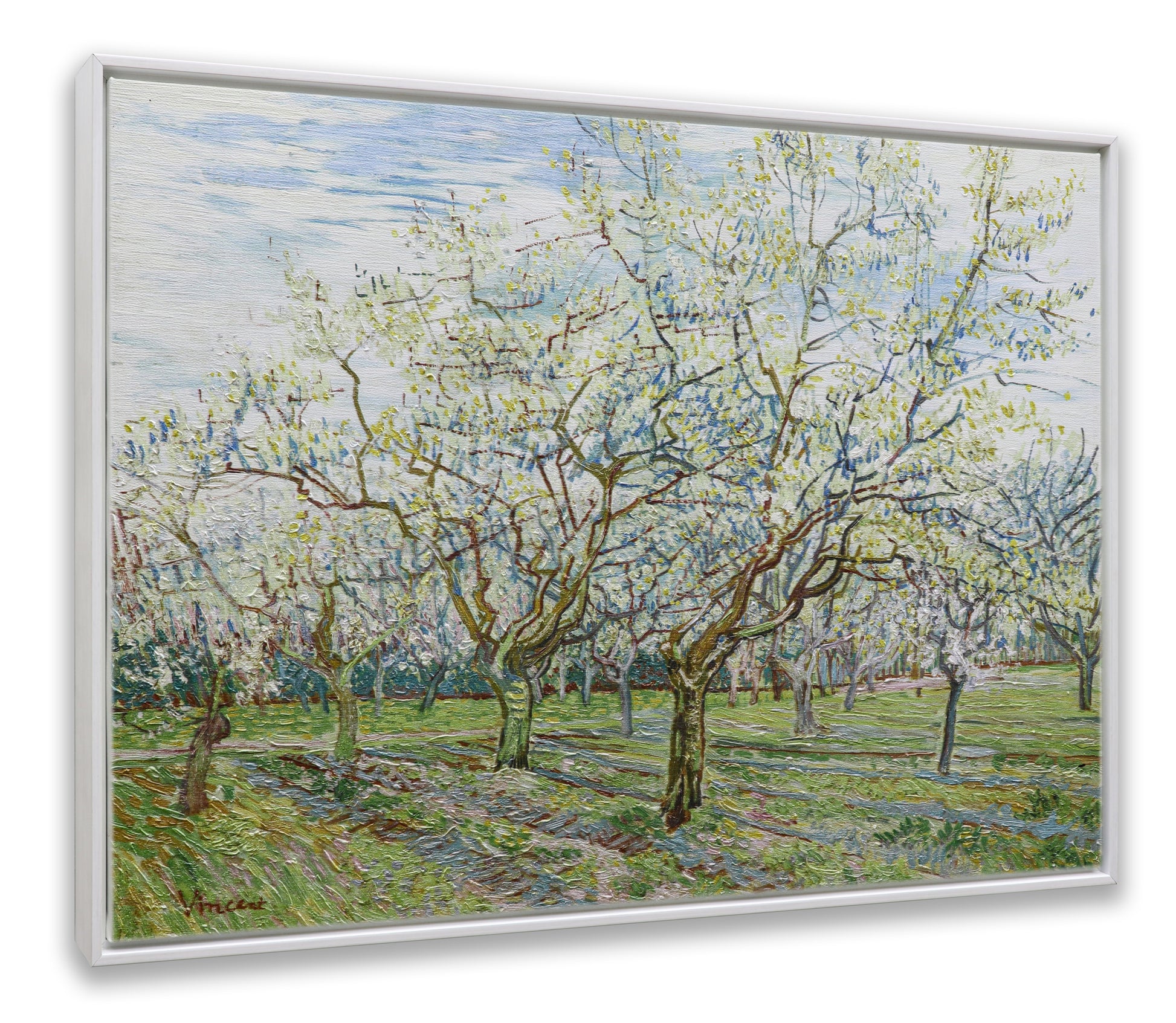 3D Print simulation hand painted texture on canvas painting Framed Van Gogh Famous Classic Wall Art The White Orchard 3D Brushstroke Texture Wood frame UNIQUE INNOVATION Patent pending