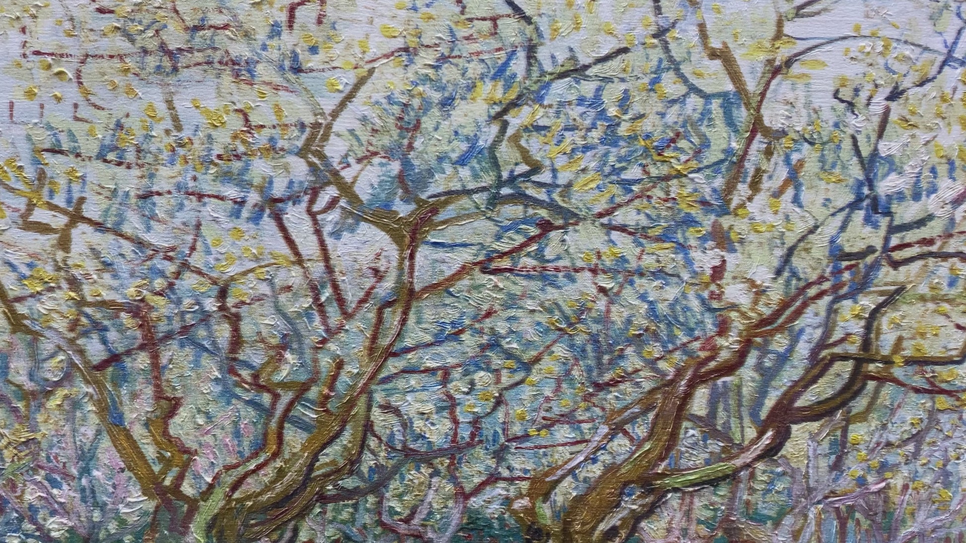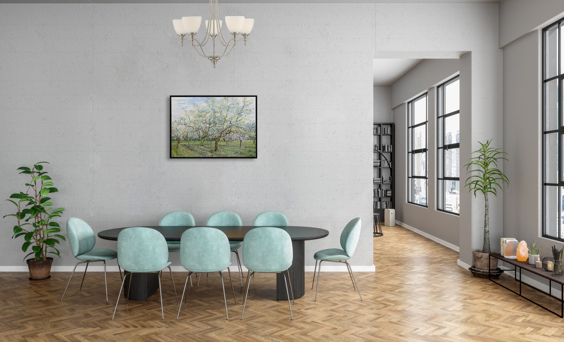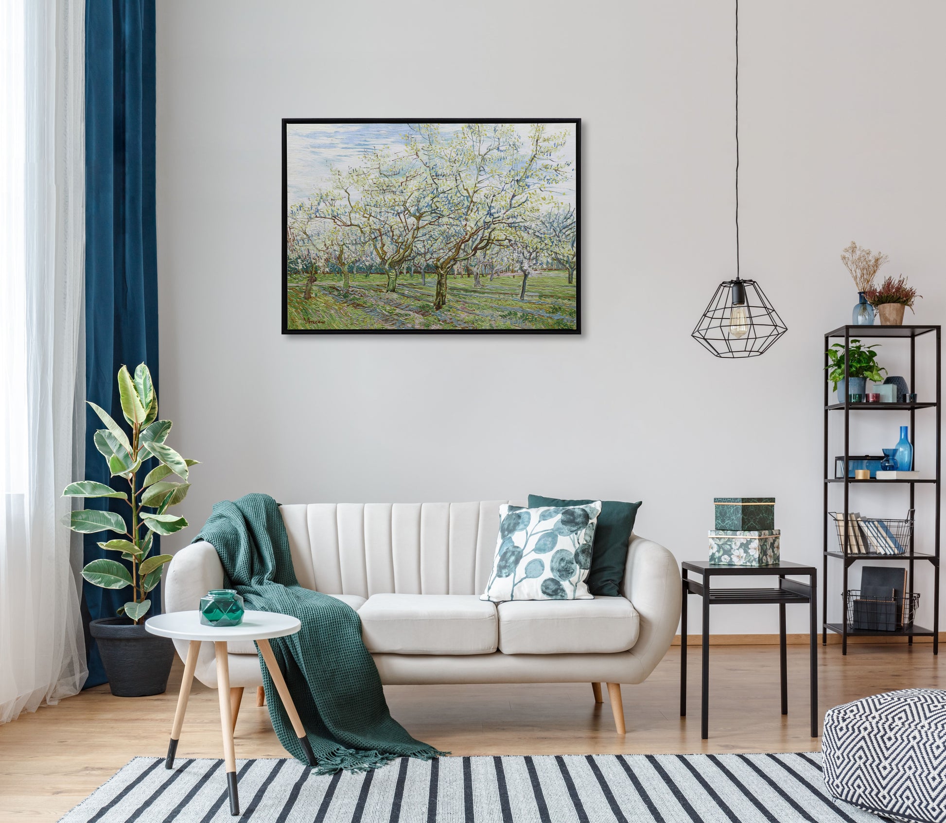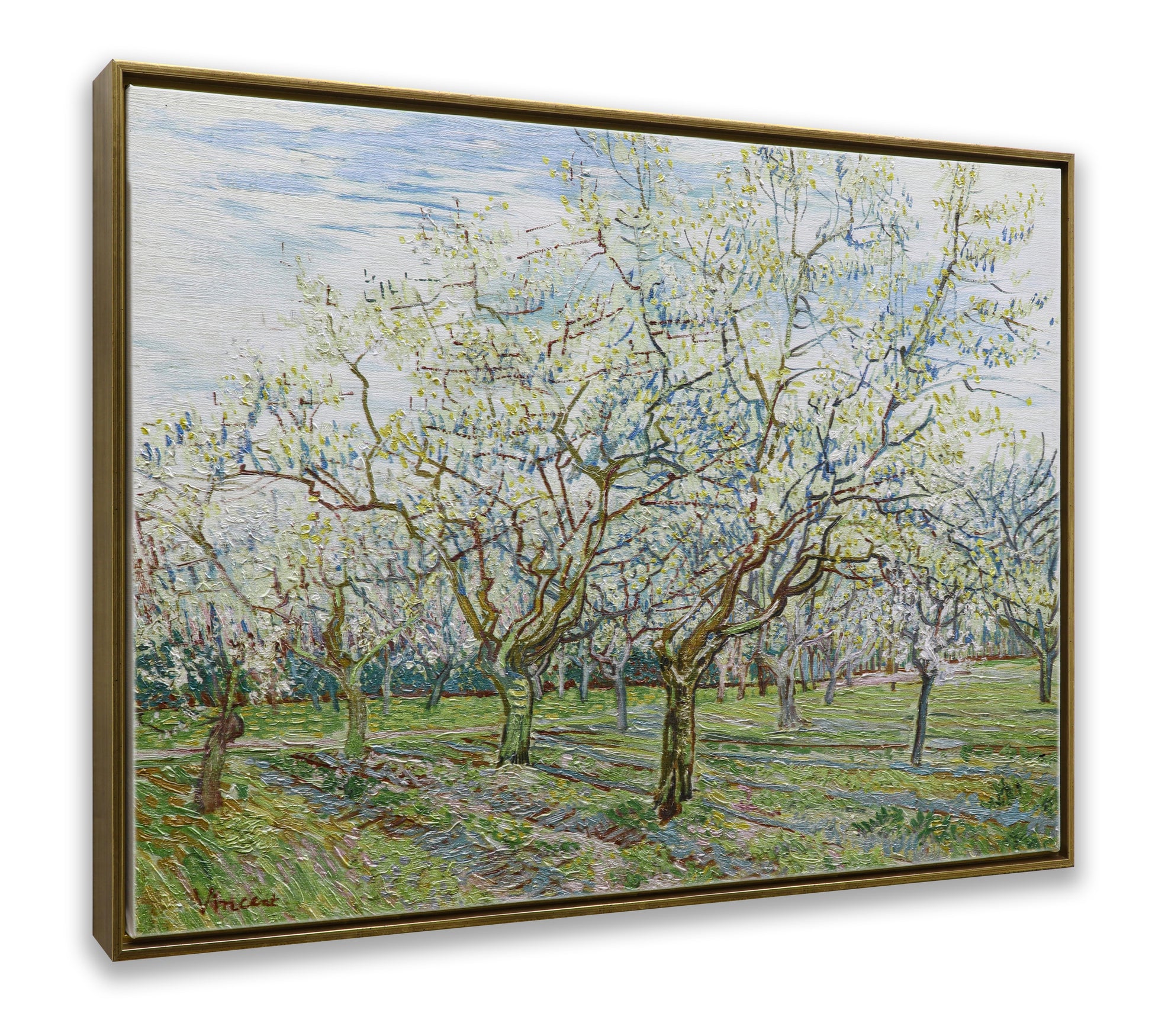 3D Print simulation hand painted texture on canvas painting Framed Van Gogh Famous Classic Wall Art The White Orchard 3D Brushstroke Texture Wood frame UNIQUE INNOVATION Patent pending