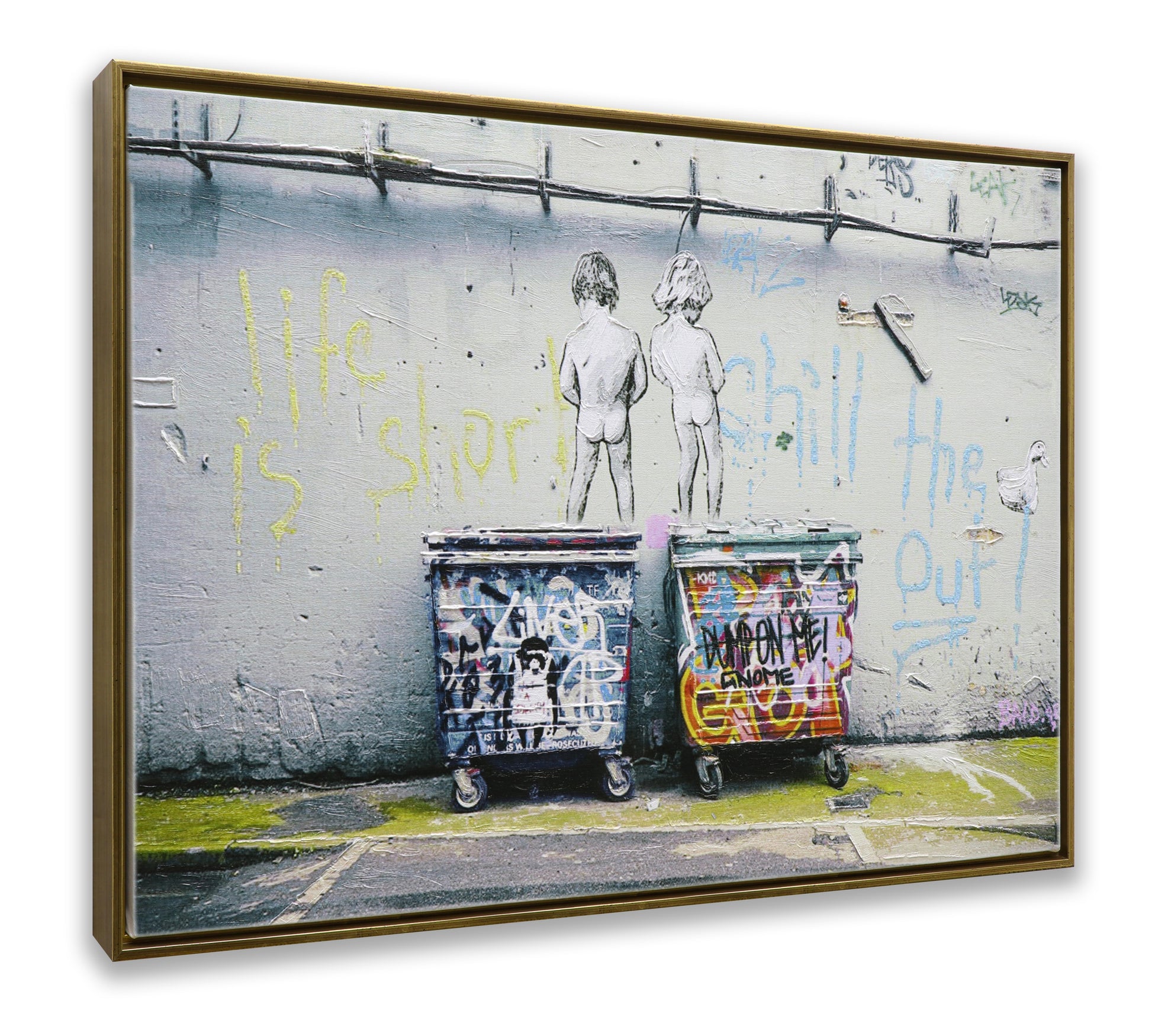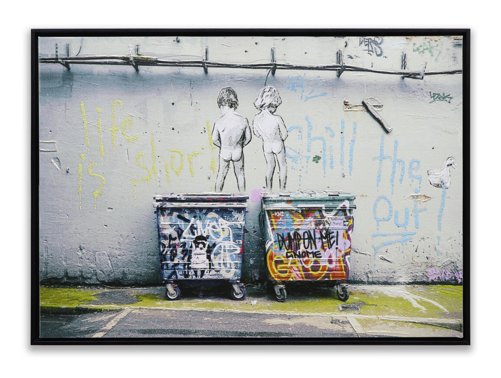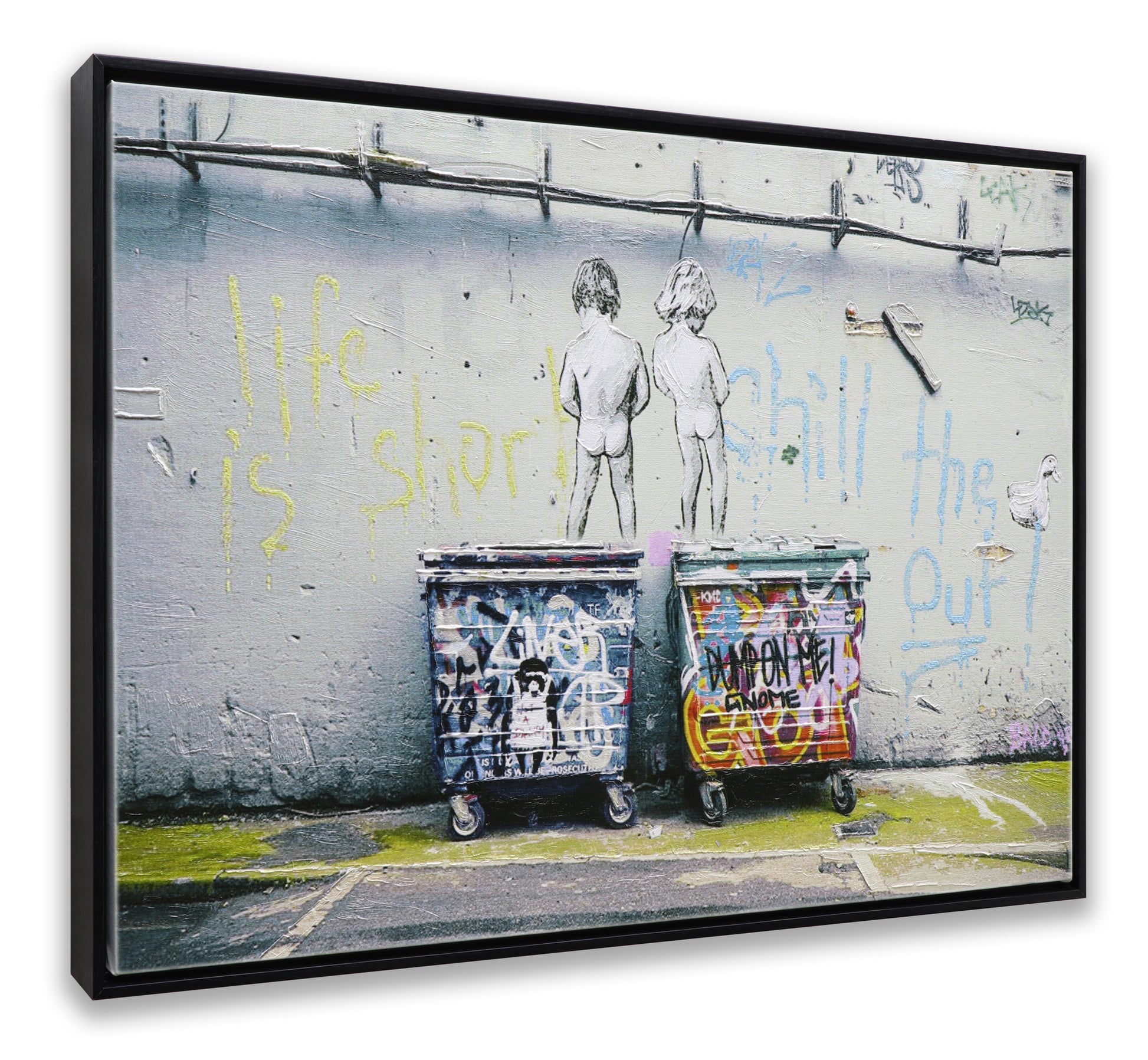 3D Print simulation hand painted texture on canvas painting Banksy Famous Wall Art Graffiti Life is Short, Chill the Duck Out 3D Brushstroke Texture Wood frame UNIQUE INNOVATION Patent pending