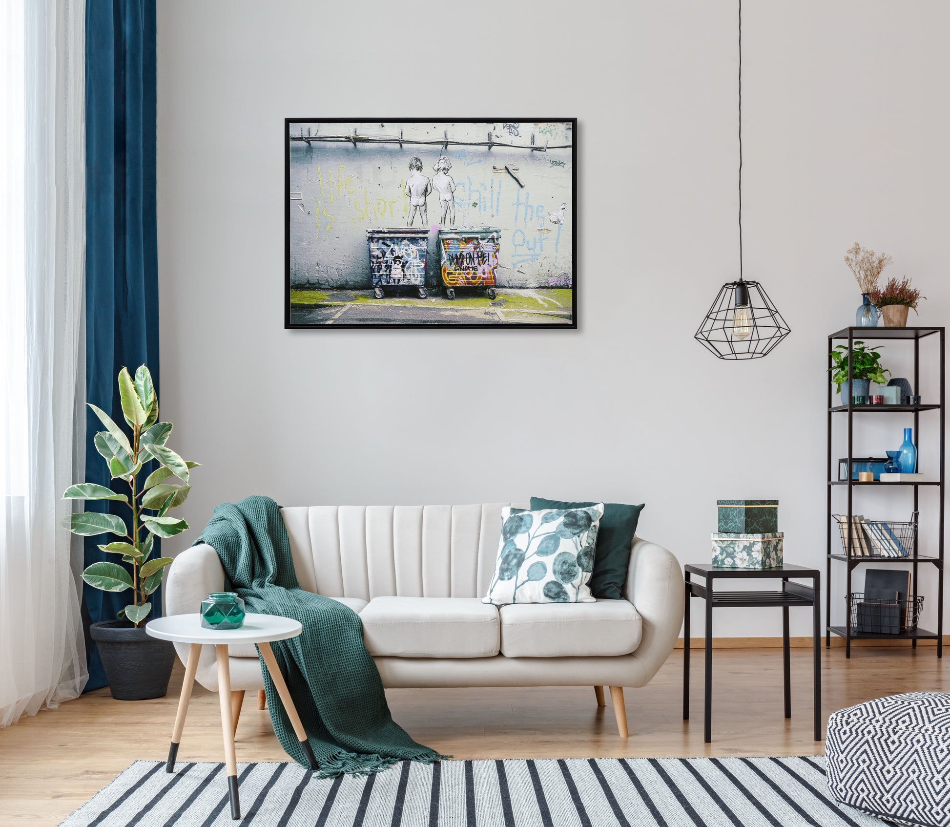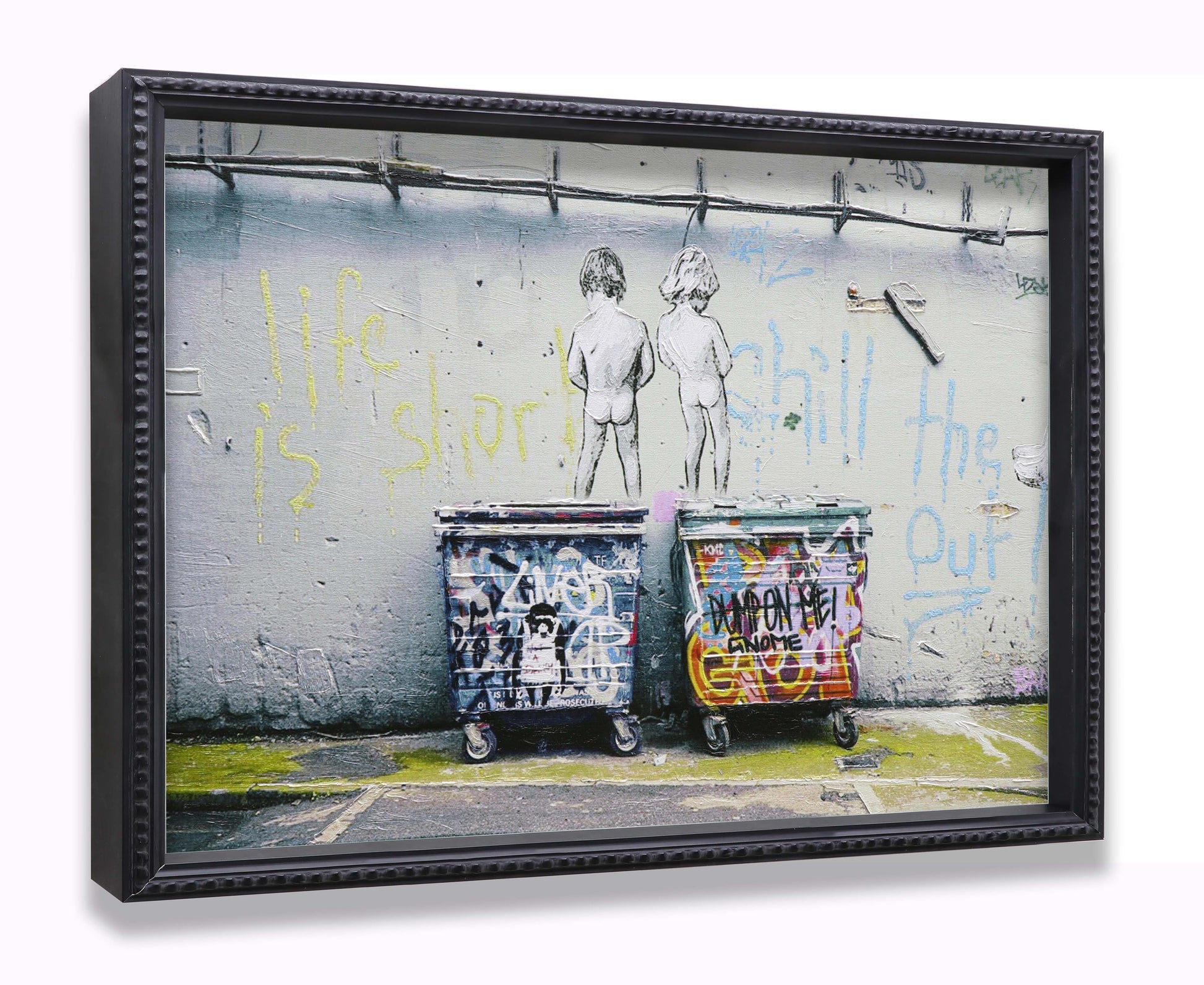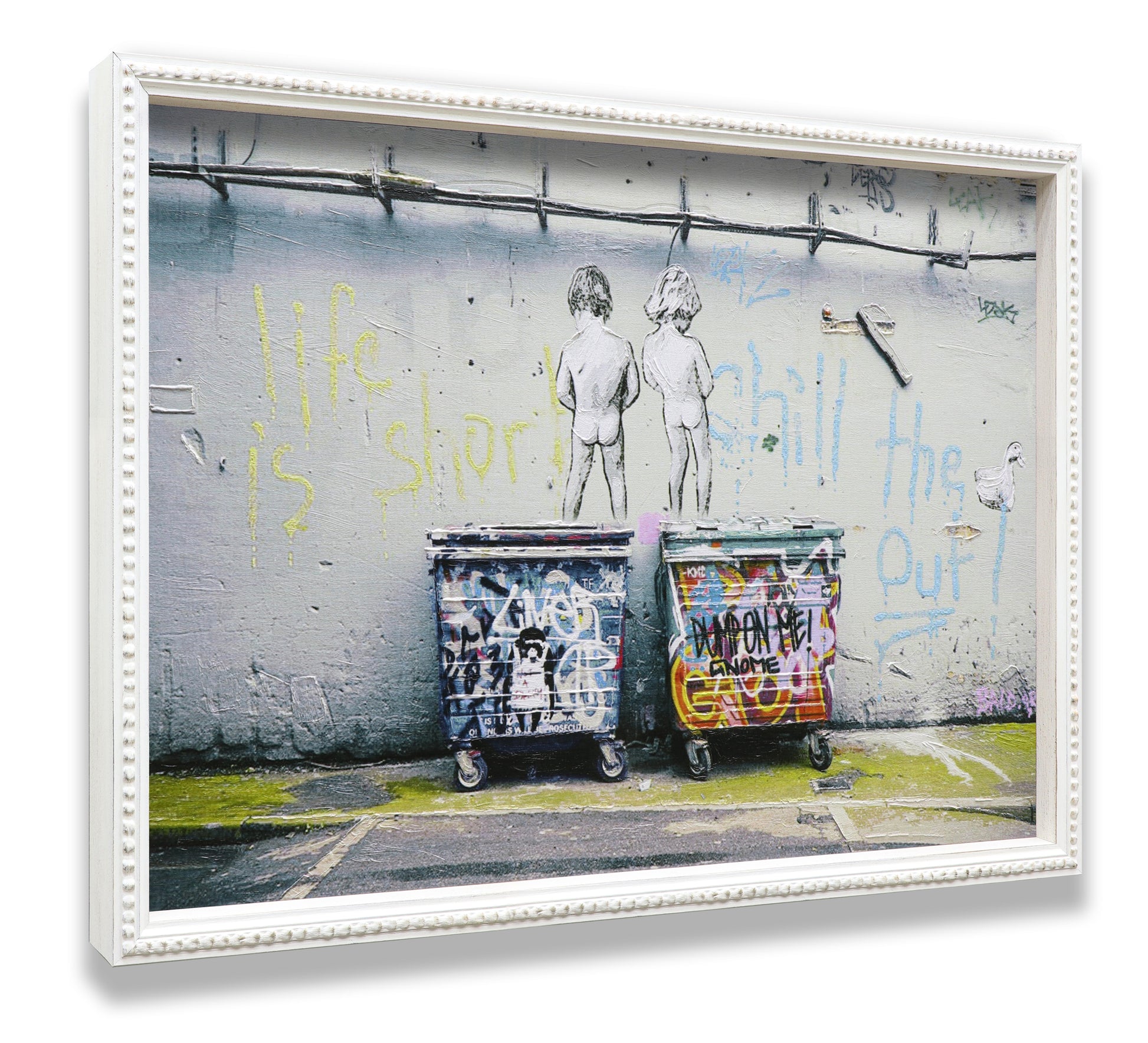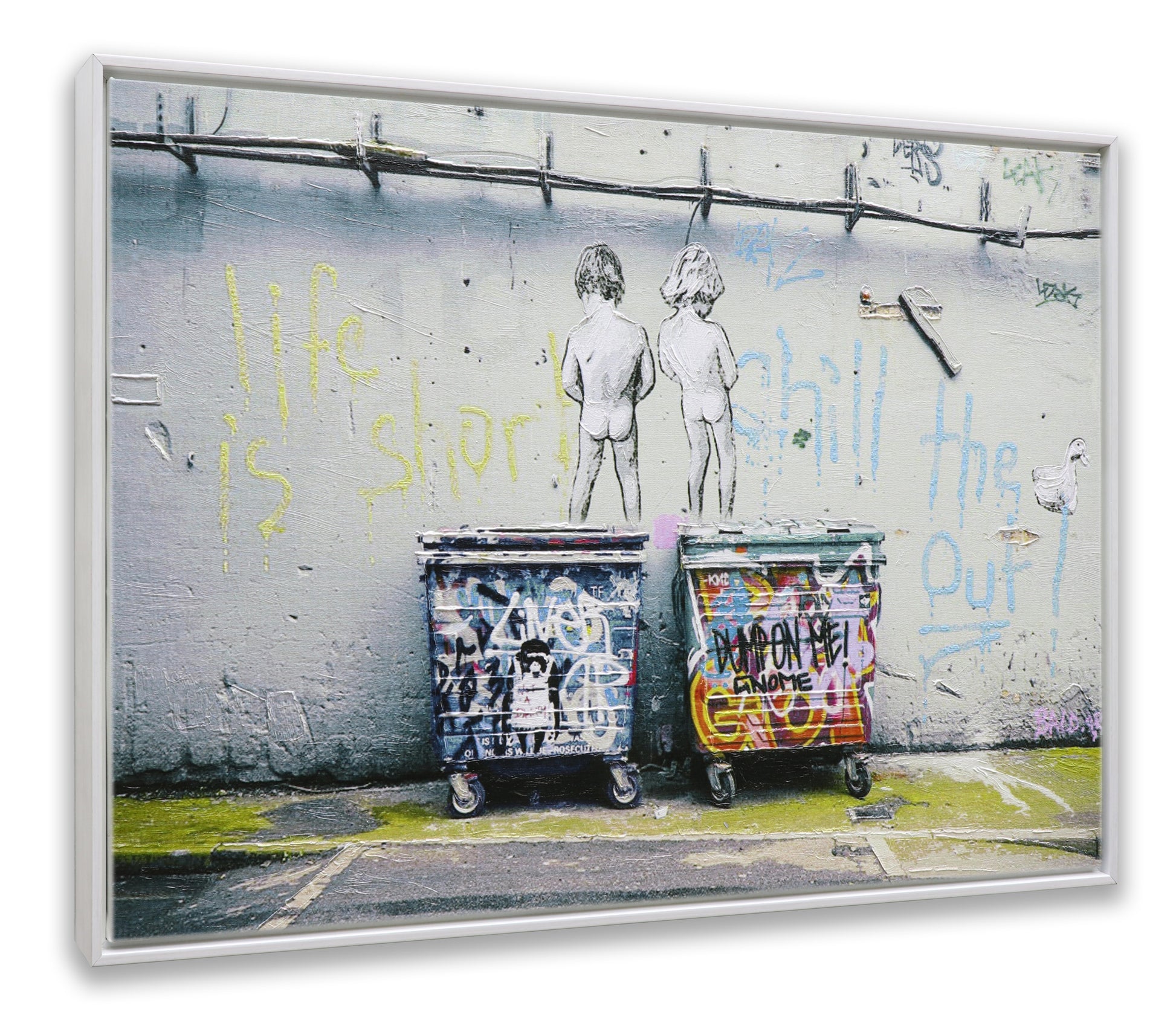 3D Print simulation hand painted texture on canvas painting Banksy Famous Wall Art Graffiti Life is Short, Chill the Duck Out 3D Brushstroke Texture Wood frame UNIQUE INNOVATION Patent pending