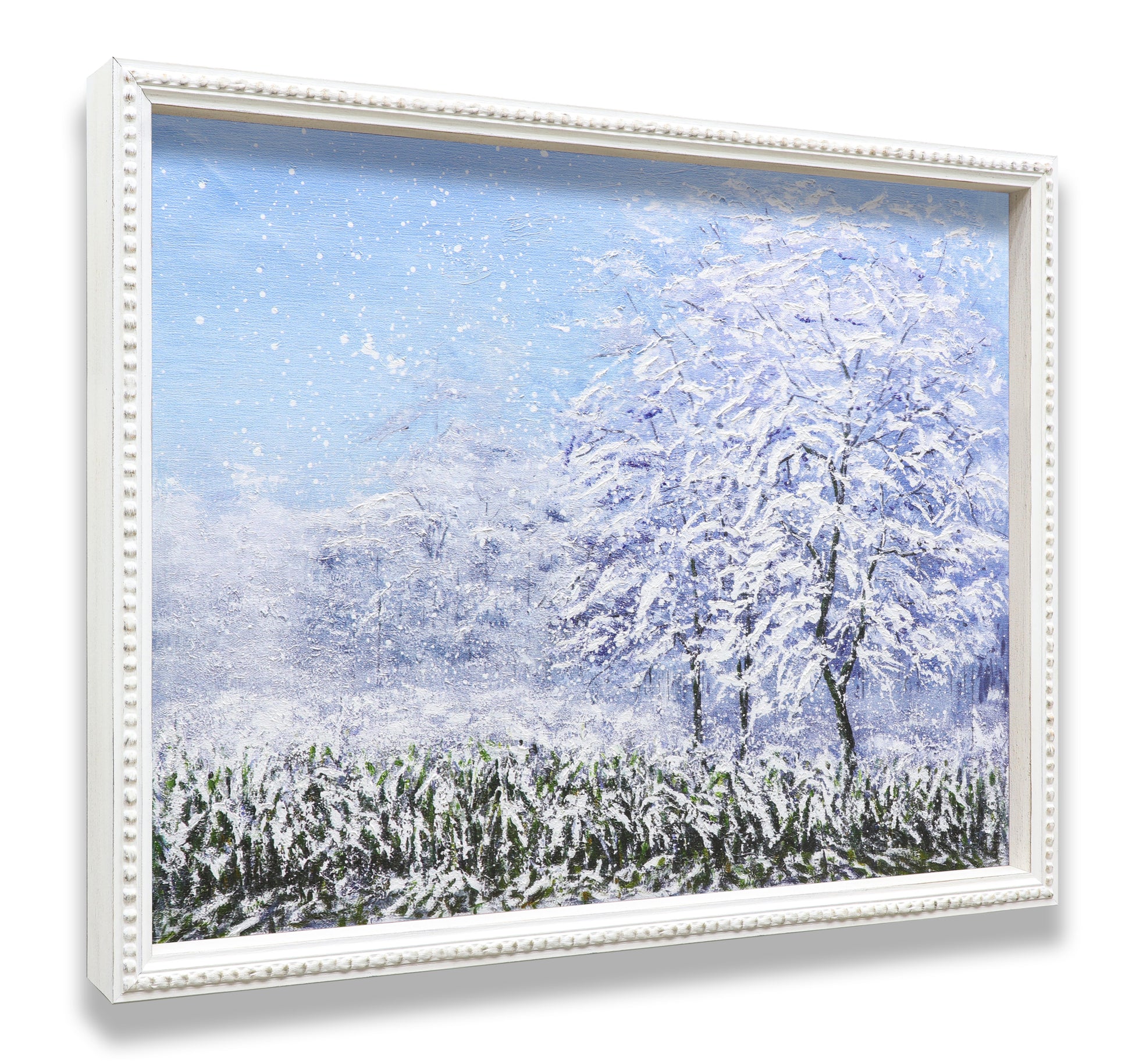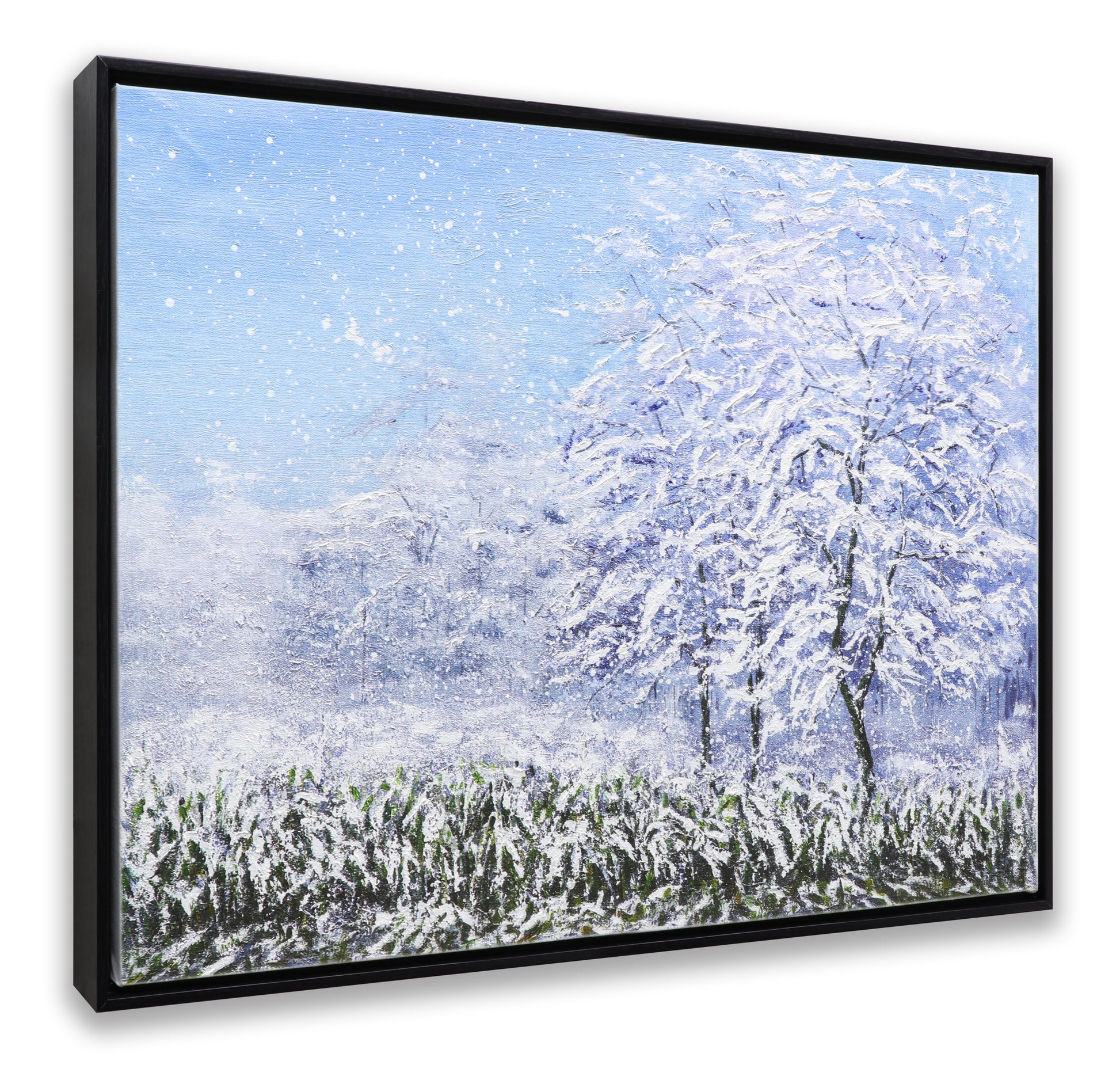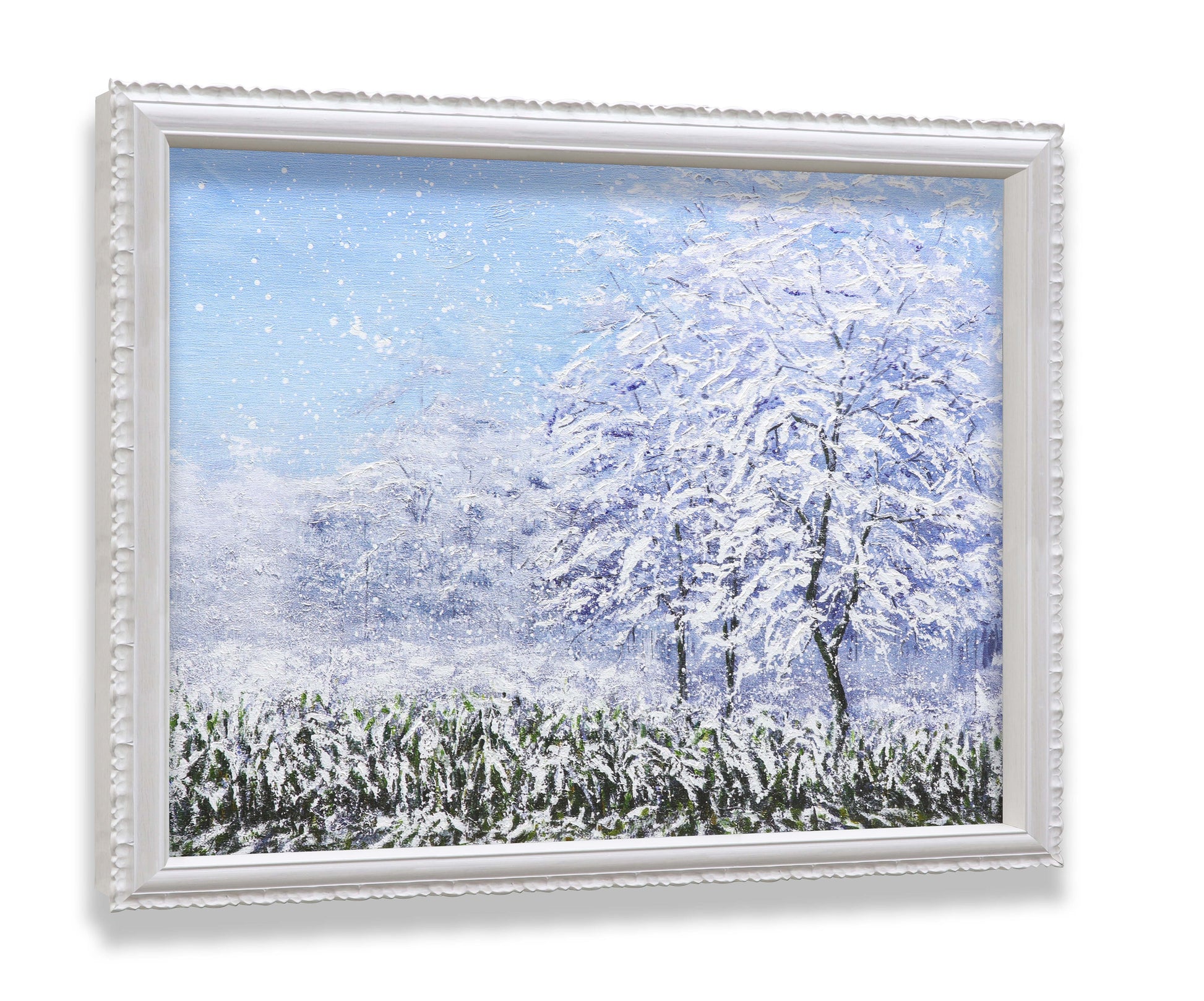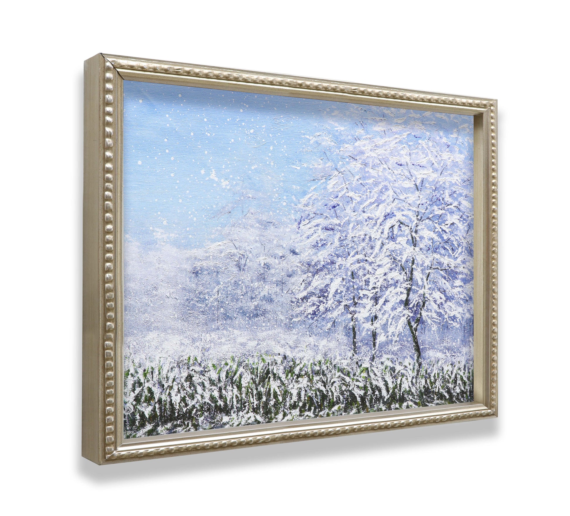 3D Print simulation hand painted texture on canvas painting Wall Art Winter Snow Forest Tree 3D Brushstroke Texture Wood frame UNIQUE INNOVATION Patent pending