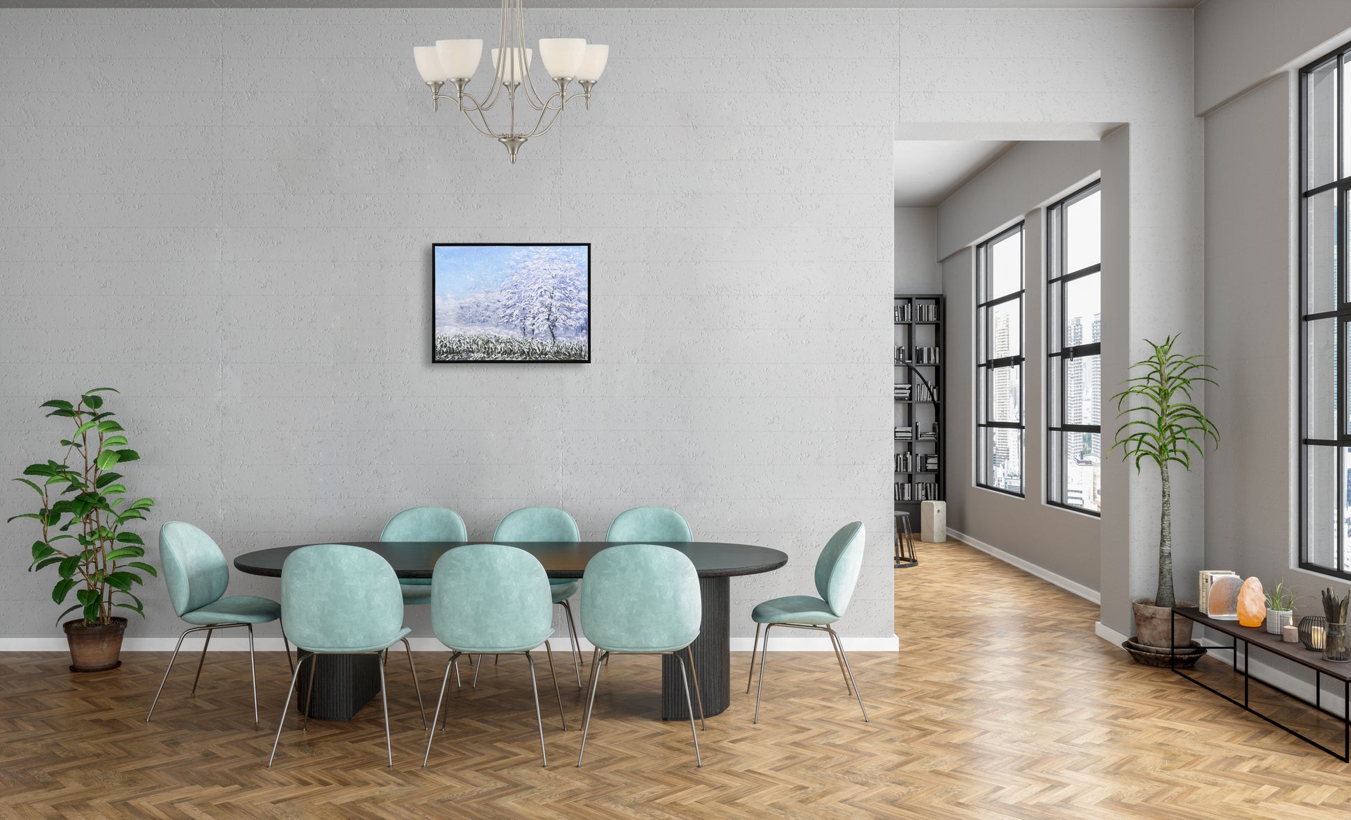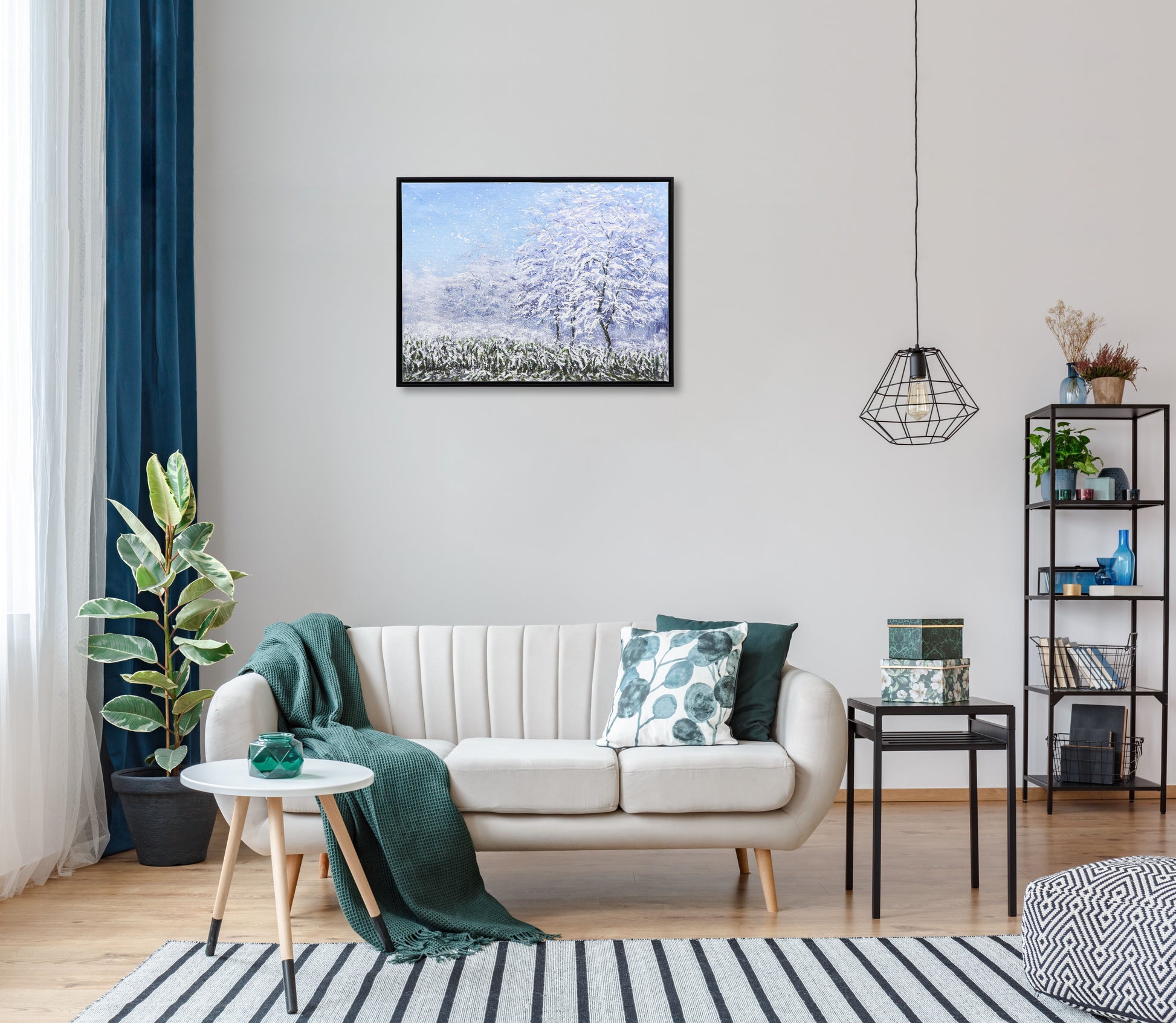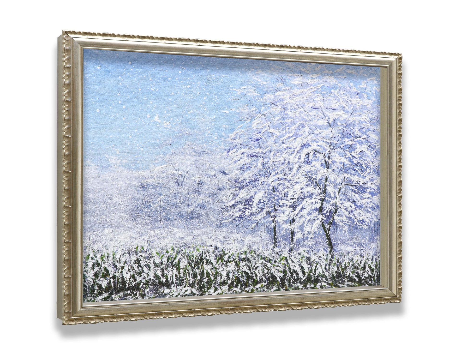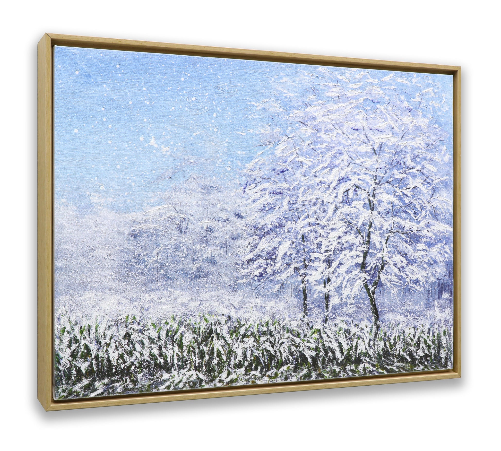 3D Print simulation hand painted texture on canvas painting Wall Art Winter Snow Forest Tree 3D Brushstroke Texture Wood frame UNIQUE INNOVATION Patent pending