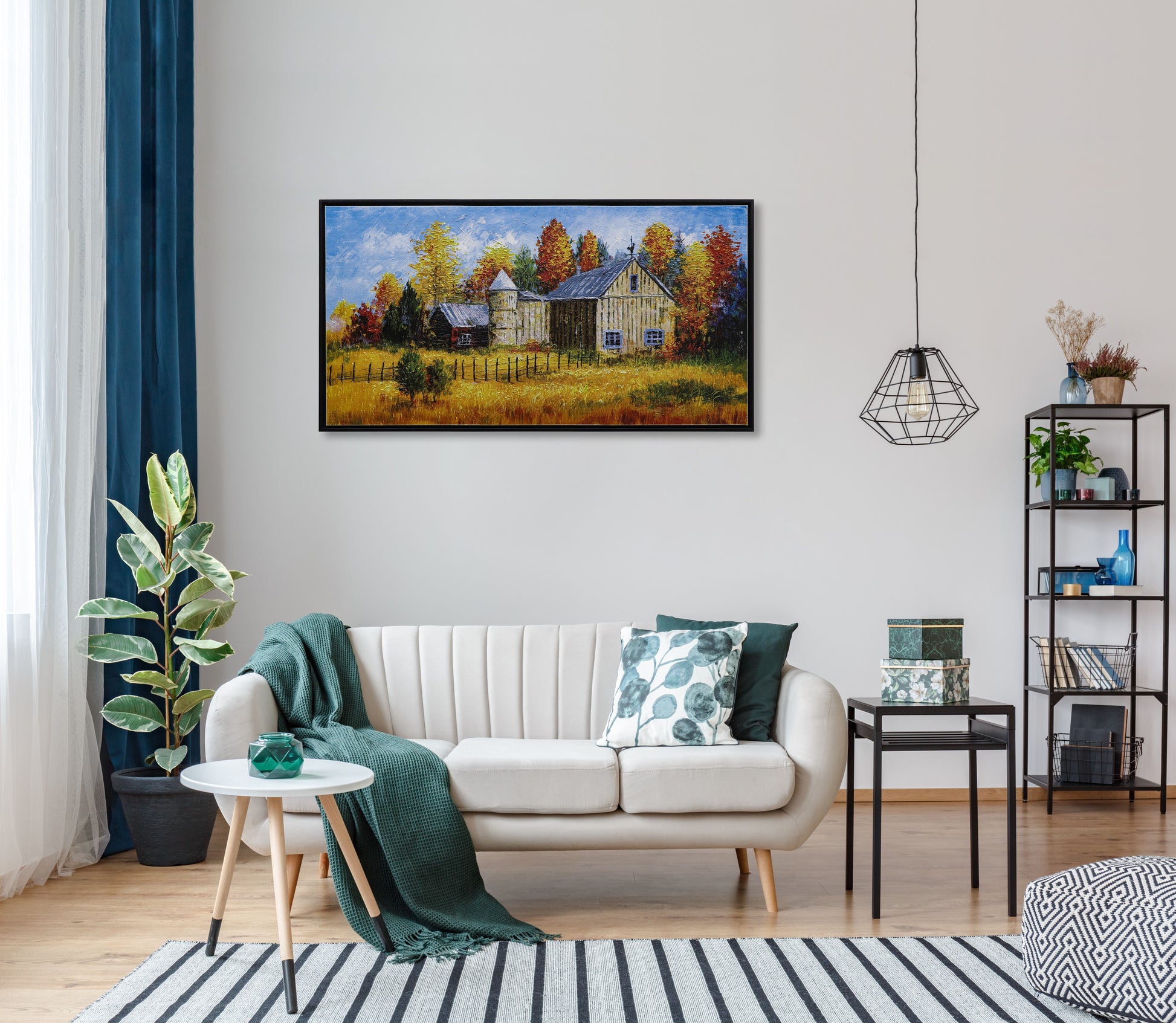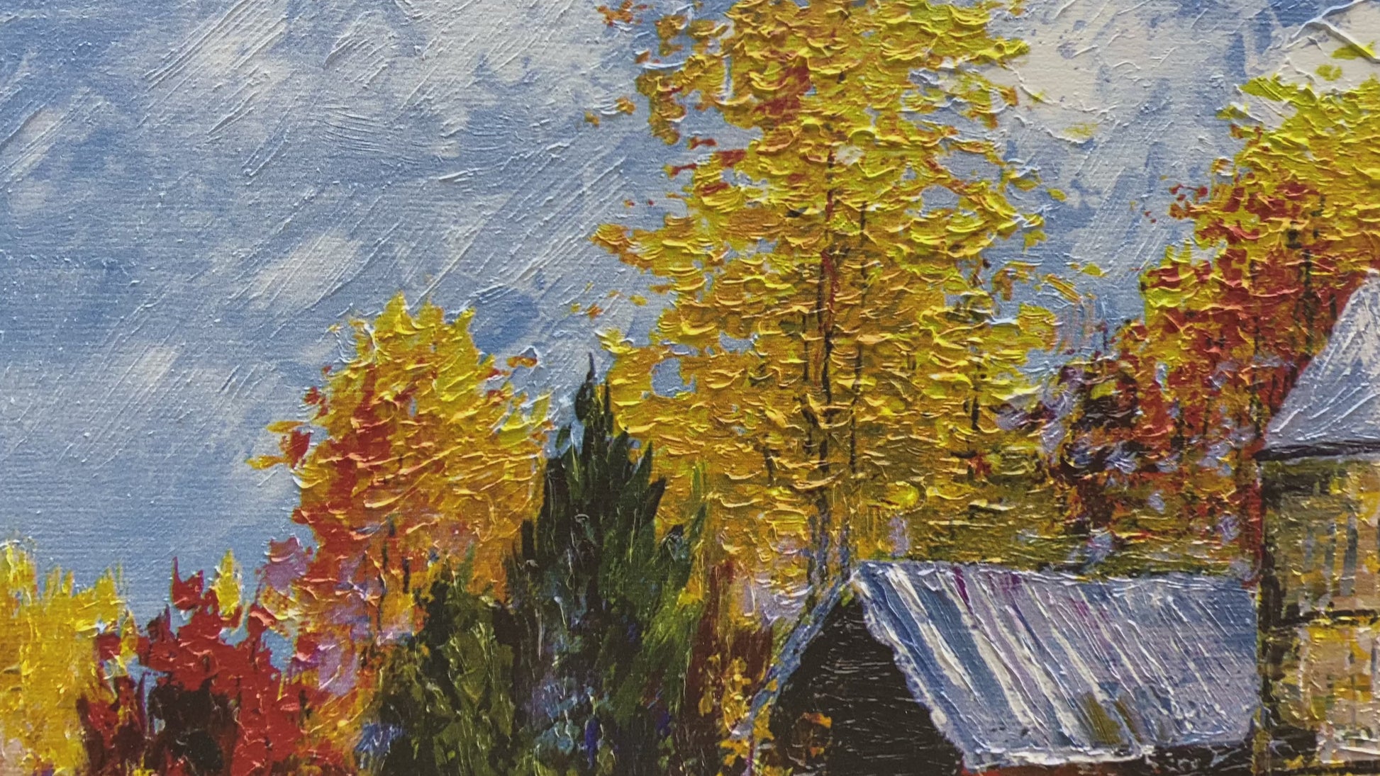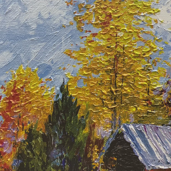 3D Print at micro-level precision simulation hand painted texture on canvas painting Wall Art Fall Barn House Autumn with Linen Mat Board and Gold Trim 3D Brushstroke Texture Wood frame UNIQUE INNOVATION Patent pending