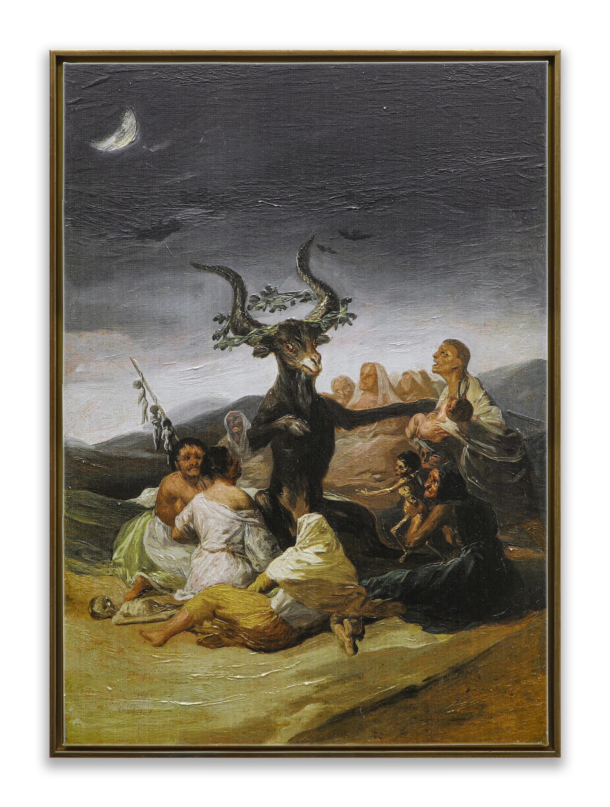3D Print Simulation Hand Painted Texture on Canvas Painting Francisco Goya Famous Classic Wall Art Witches' Sabbath 3D Brushstroke Texture Wood frame UNIQUE INNOVATION Patent pending