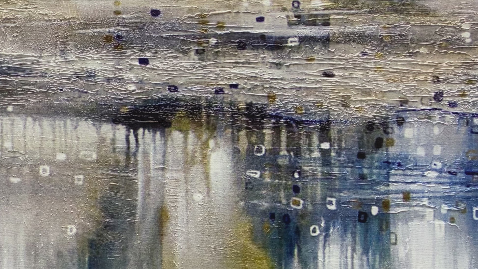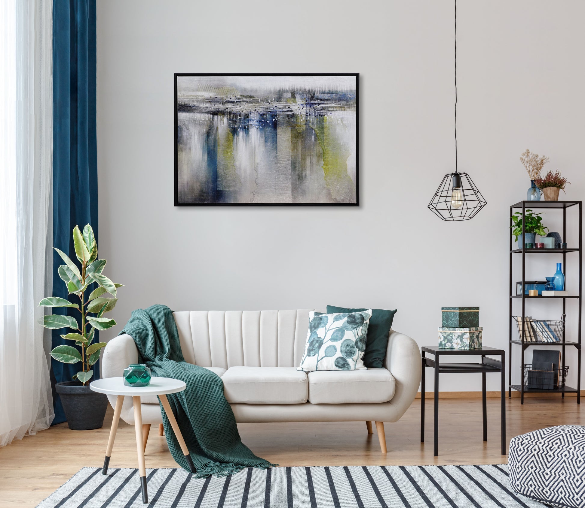 3D Print simulation hand painted texture on canvas painting Wall Art Morden Abstract Minimal Water Reflection 3D Brushstroke Texture Wood frame UNIQUE INNOVATION Patent pending